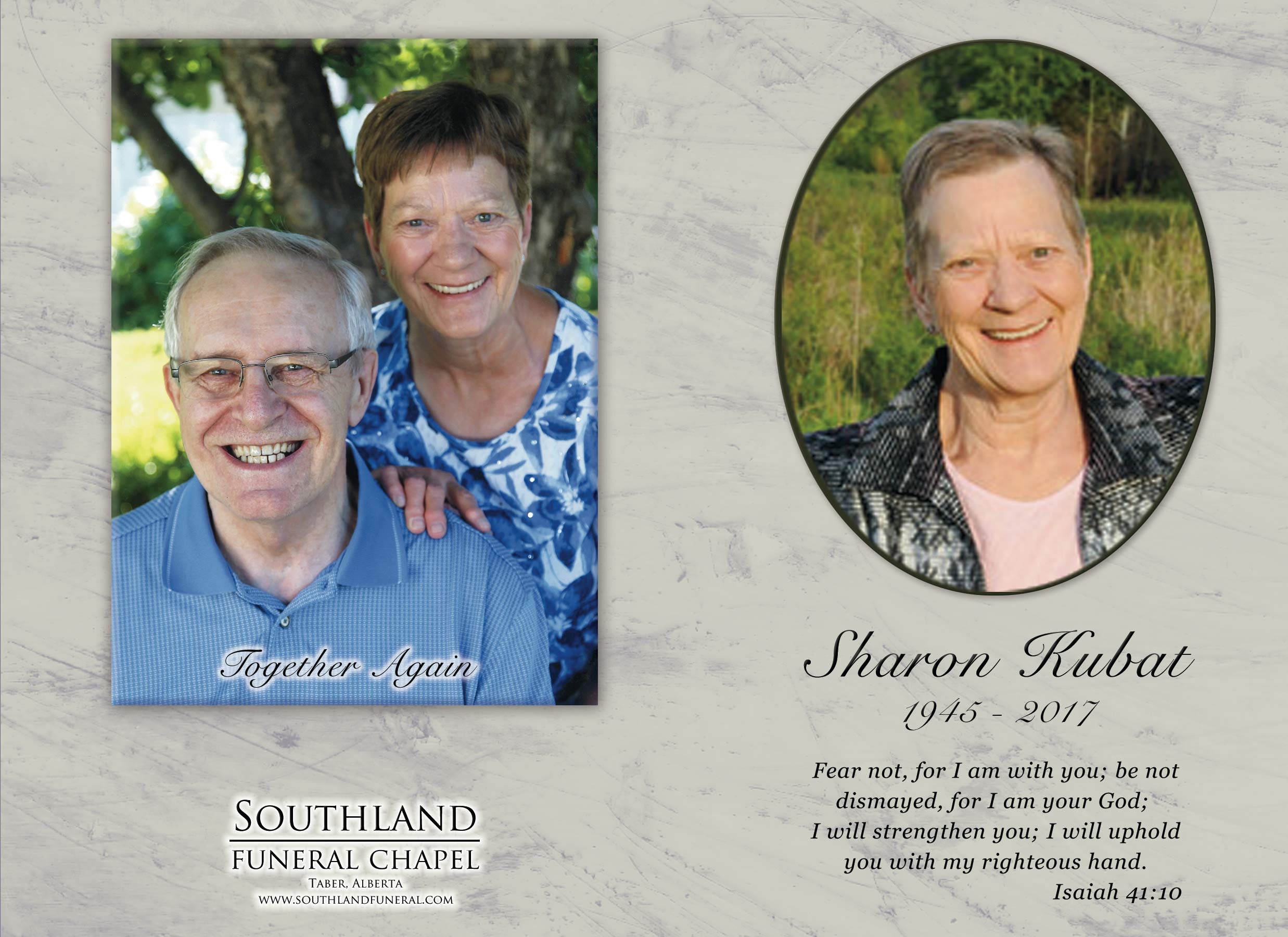 Sharon Eleanor Kubat, beloved wife of the late Wes Kubat, passed away in Okotoks on Wednesday, February 22, 2017 at the age of 71 years.