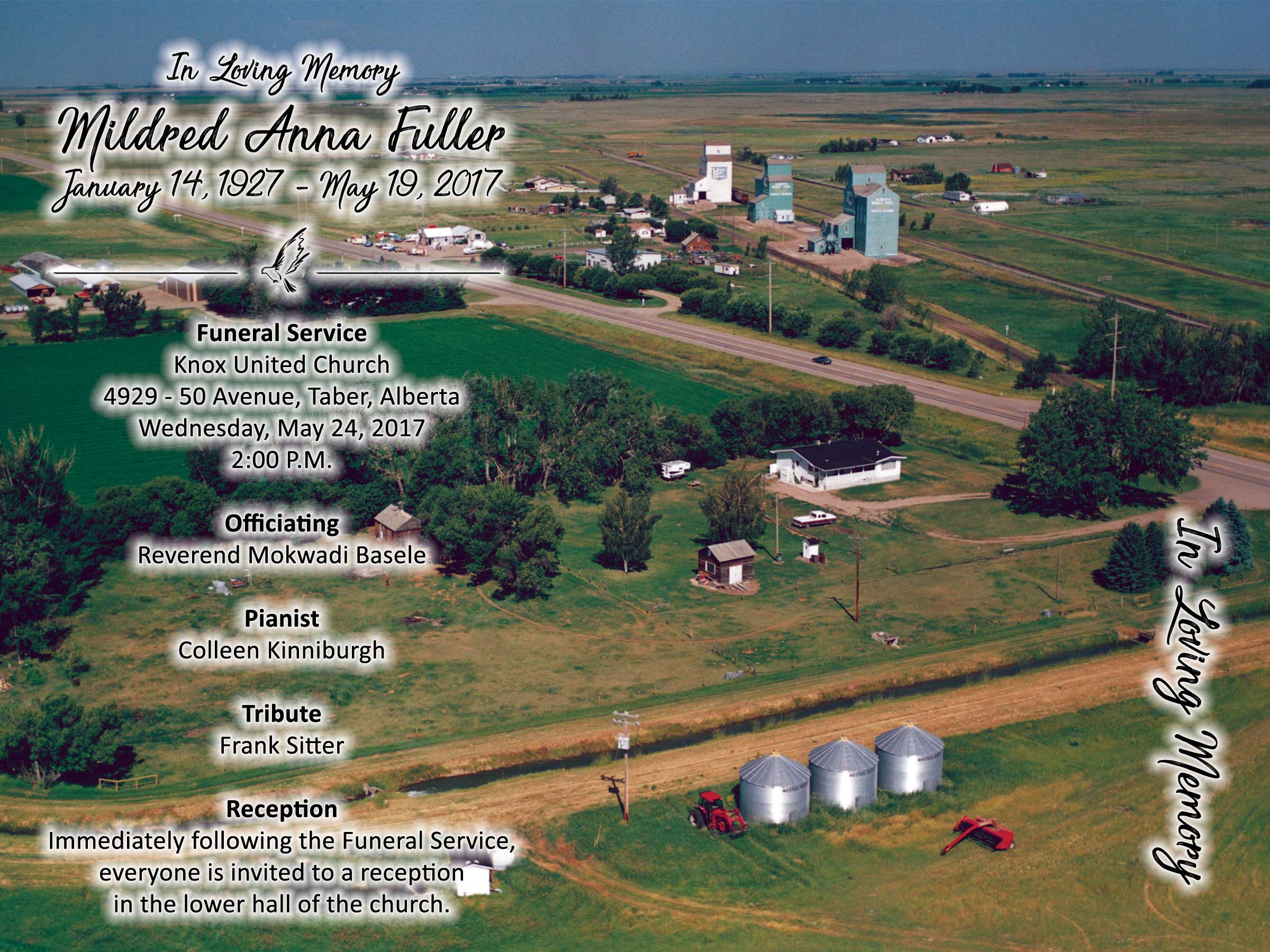The Funeral Service was held at Knox United Church, 4929 - 50 Avenue, Taber on Wednesday, May 24, 2017 at 2:00 P.M.