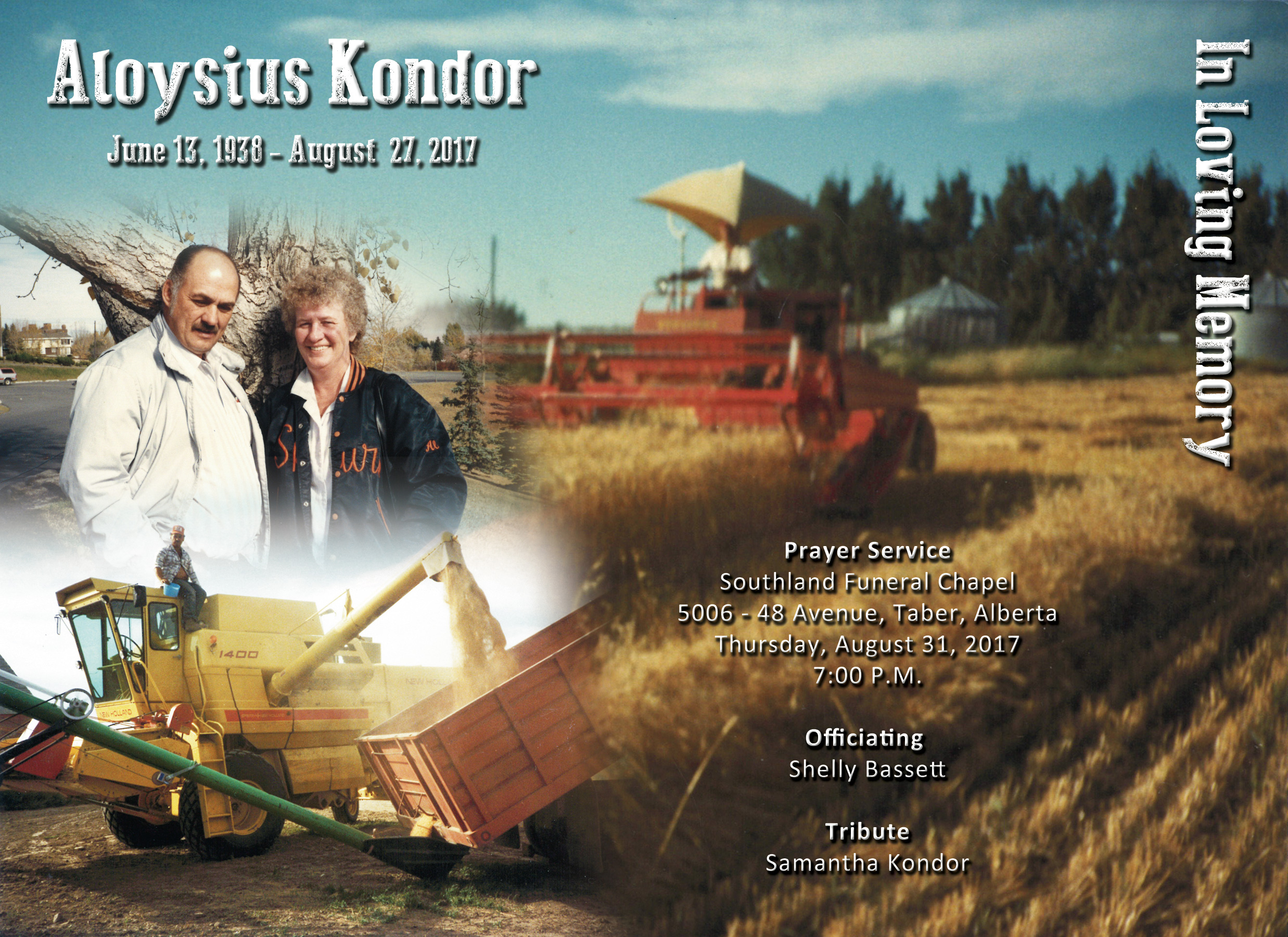 Aloysius Kondor, beloved husband of Jeannette Kondor, passed away in Lethbridge on Sunday, August 27, 2017 at the age of 79 years.