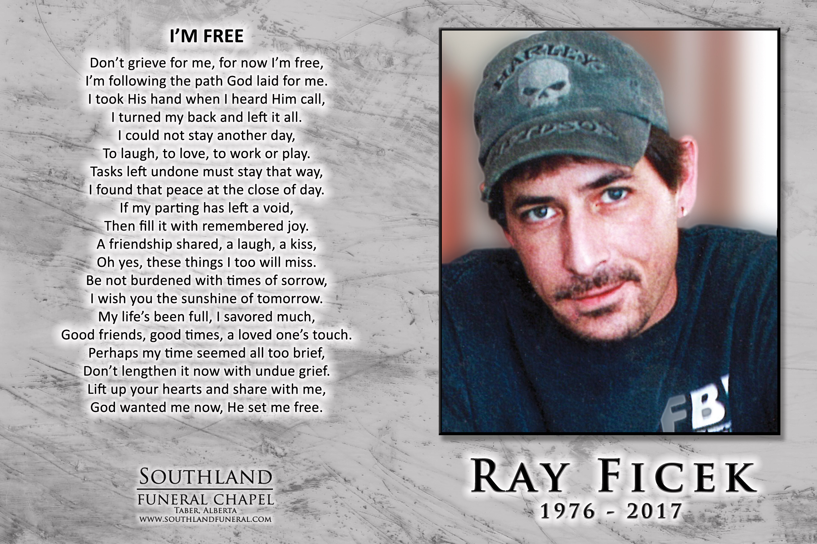 Ray was born on March 5, 1976 in Taber where he was raised. He made many friends throughout his school years and through various sporting activities which included hockey, baseball, basketball and volleyball. Ray began working in the oilfield at an early age. This was something he thoroughly enjoyed as he acquired many life skills and friendships along the way. Some of Ray’s favorite hobbies included camping with his dad, dirt biking, skateboarding with neighborhood kid’s and working with his hands on different building and repairing projects. Ray’s greatest achievement in life was and will always be his four beautiful children. The family also wishes to extend their gratitude to Emma, a very special friend who lifted Ray’s spirits during his courageous battle. He will be sorely missed by many close family and friends.
