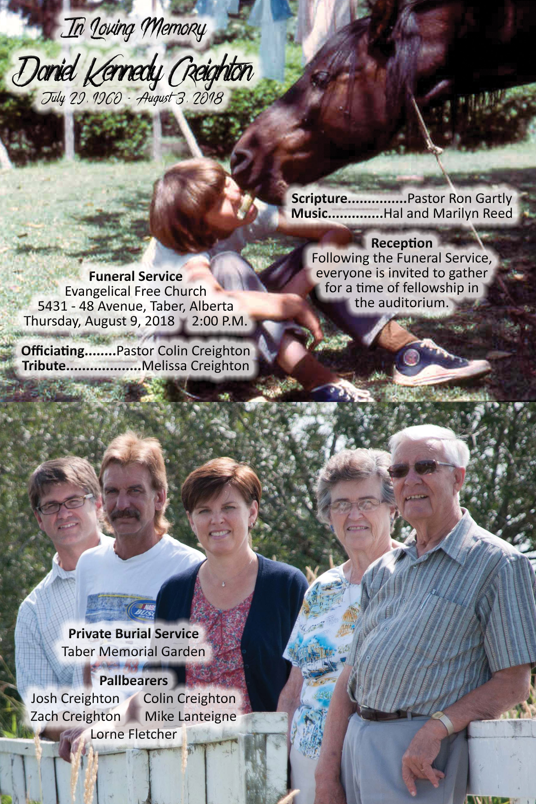Daniel Kennedy Creighton, passed away in Taber on Friday, August 3, 2018 at the age of 58 years.