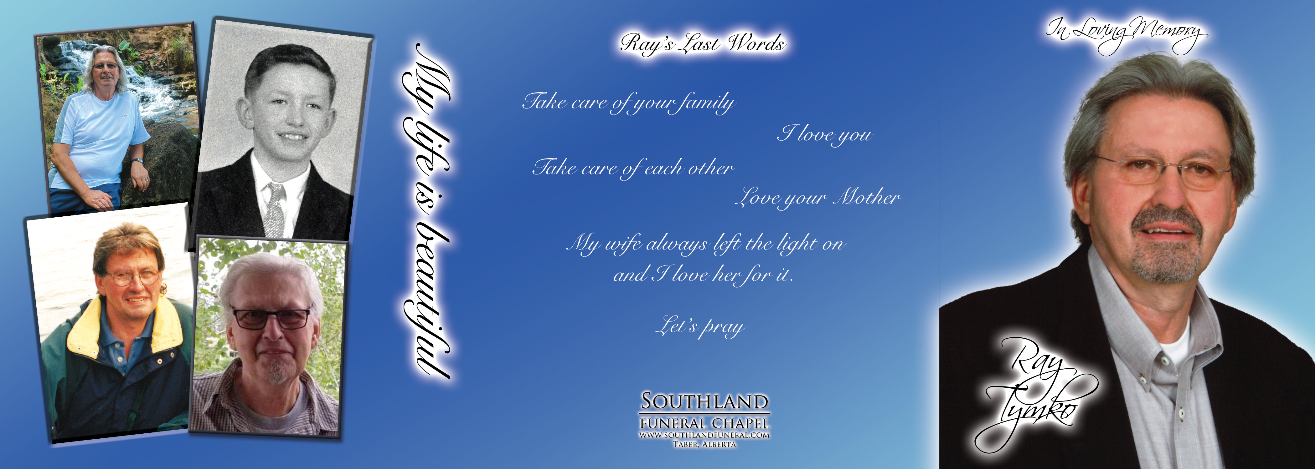 He is survived by his loving wife Jenny, their sons Kim (Trina) Tymko of Lethbridge, Sheldon (Bee) Tymko of Taber and daughter Raylene Tymko of Lethbridge. He was a beloved Poppa to five grandchildren Jordan, Kalyna, Noah, Petra and Jayda. He is survived by one brother Barry Tymko of Calgary. Ray also shared his life and love with a wealth of relatives who cherished his time spent with them.