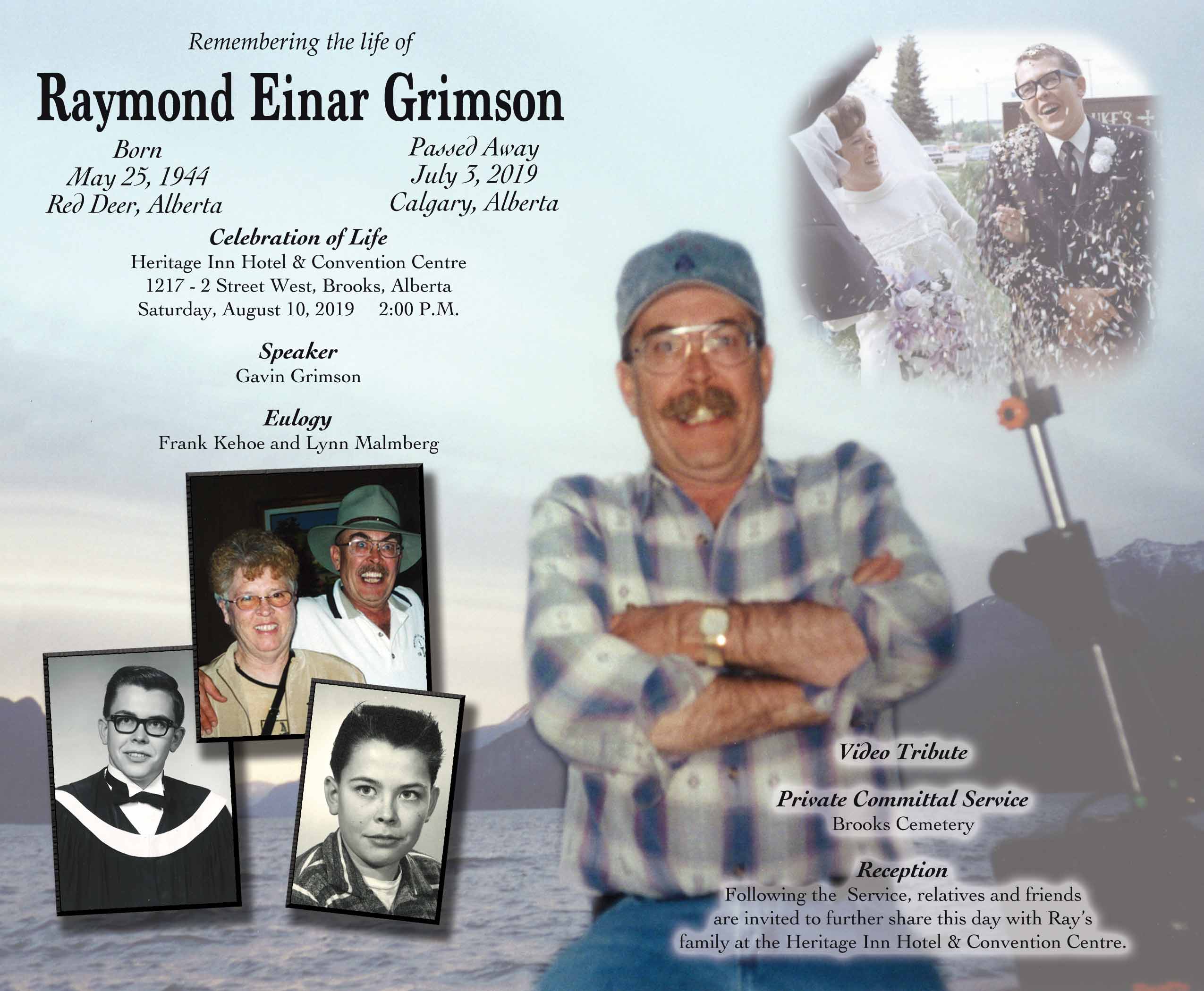 Raymond Einar Grimson, beloved husband of Alexis Grimson of Brooks, passed away in Calgary on Wednesday, July 3, 2019 at the age of 75 years.
