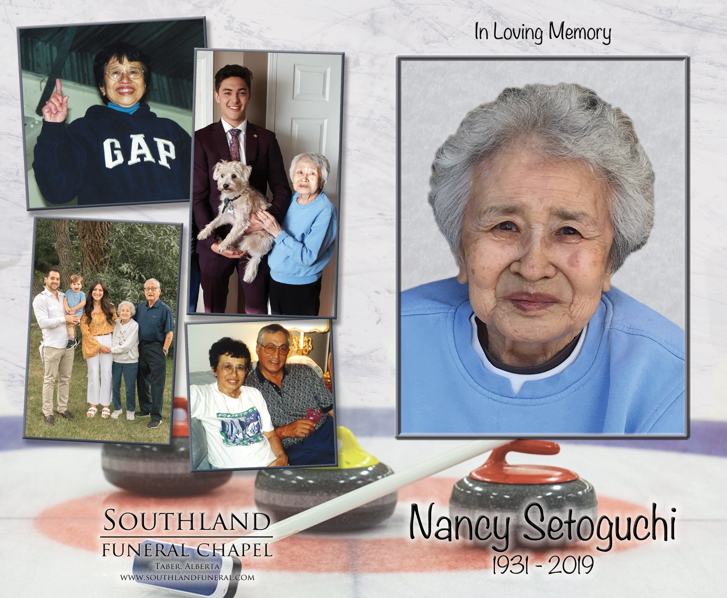 Nancy was born in White Rock, British Columbia on September 22, 1931. She relocated to Taber in 1948 where she met the love of her life Ken Setoguchi. They were married on December 4, 1954 and together they raised their three children on their farm north of Taber. Nancy was very involved and a hard worker on the farm. She was a fantastic cook, anyone that had a meal at the Setoguchi home can testify to that. Nancy loved sports, especially curling and golfing, which she excelled at and competed at a high level. She enjoyed watching her grandkids play various sports. Nancy loved watching hockey and was so proud of her grandchildren. Her kind, generous personality will be dearly missed by all her family and friends.