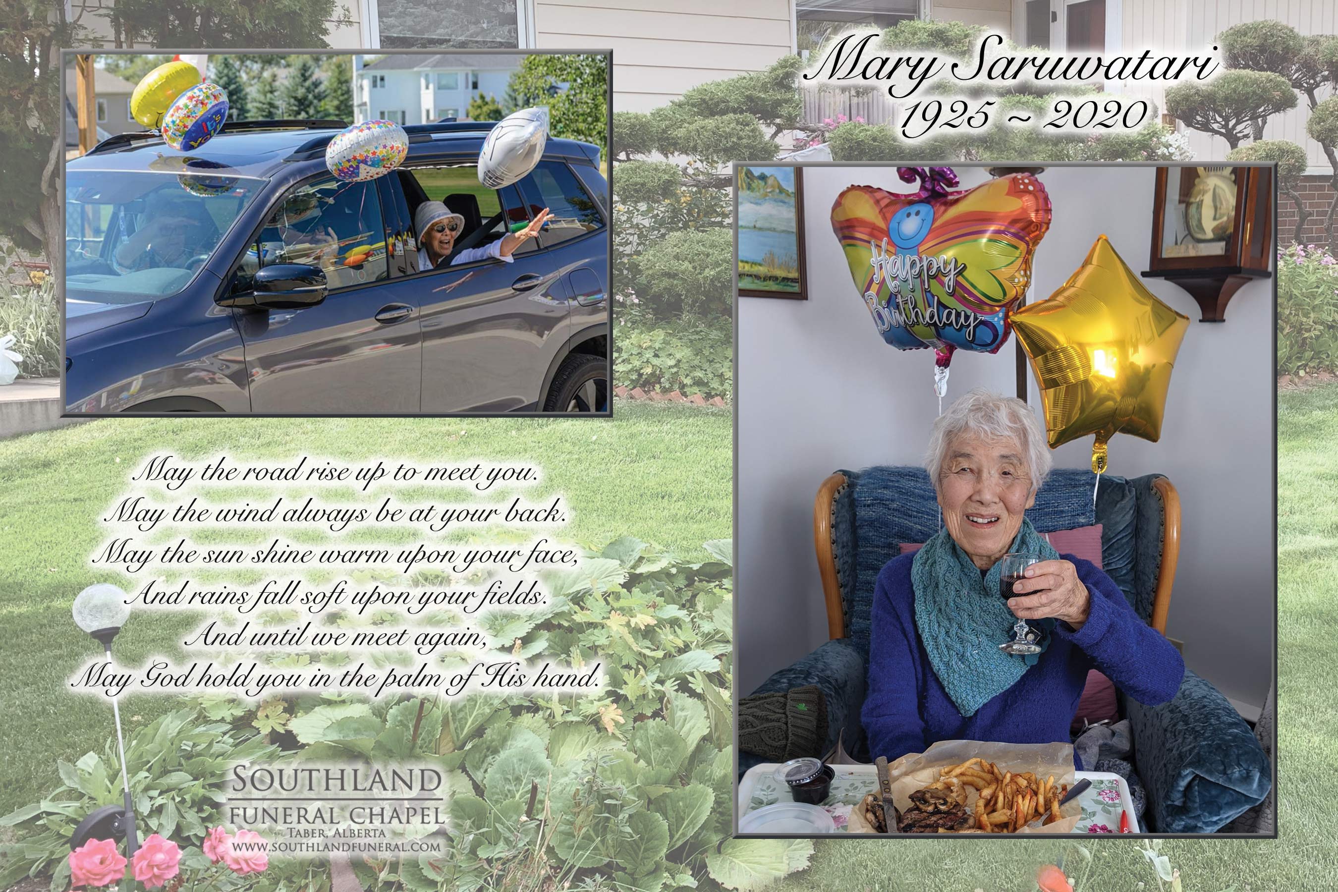 It is with great sadness, we announce that our Mom, Sueco Mary Saruwatari, affectionately known as Baba passed away peacefully in Taber on Thursday, December 31, 2020 at 95 years.