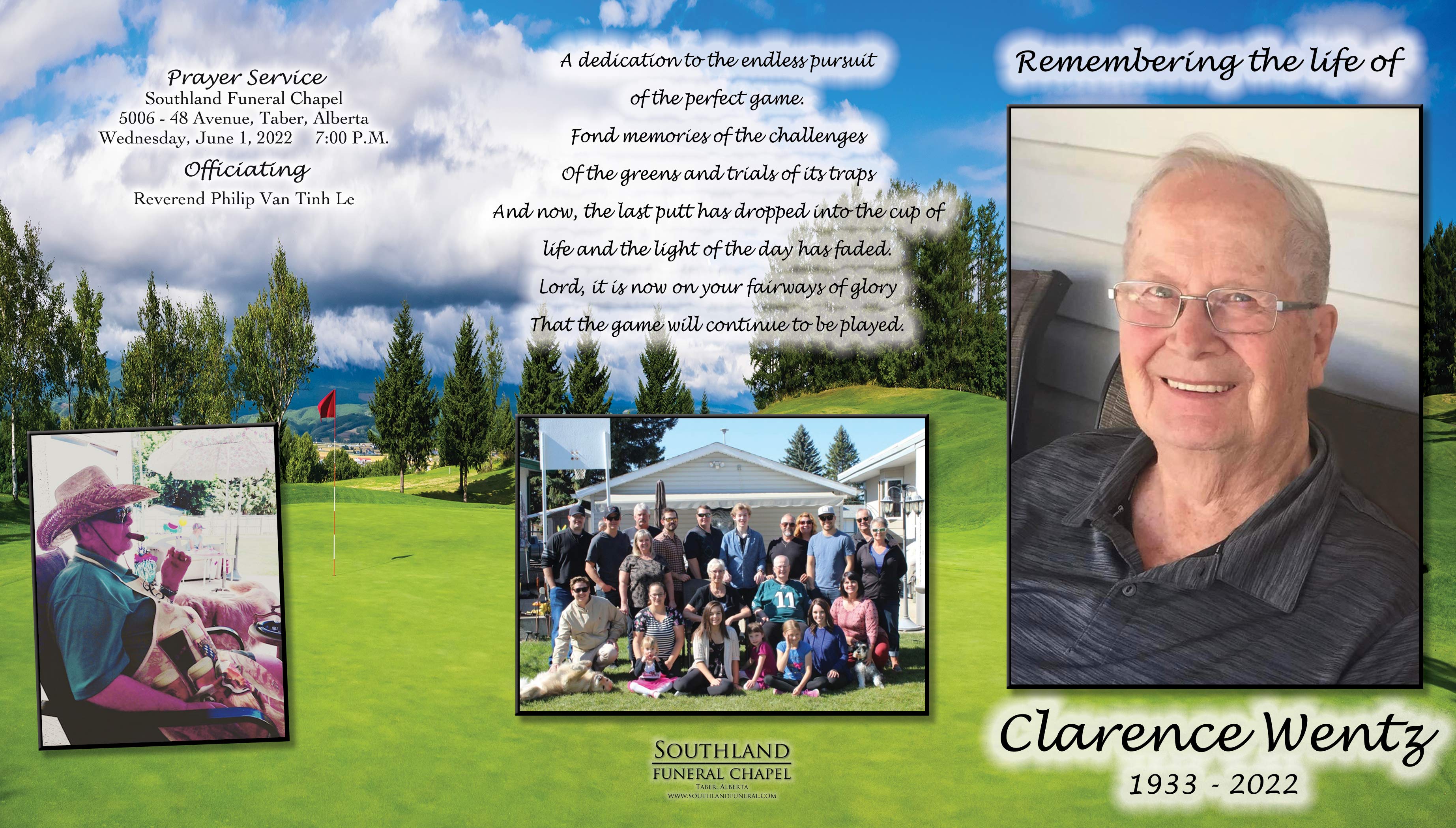 Relatives and friends were invited to Prayers at Southland Funeral Chapel, 5006 - 48 Avenue, Taber on Wednesday, June 1, 2022 at 7:00 P.M.