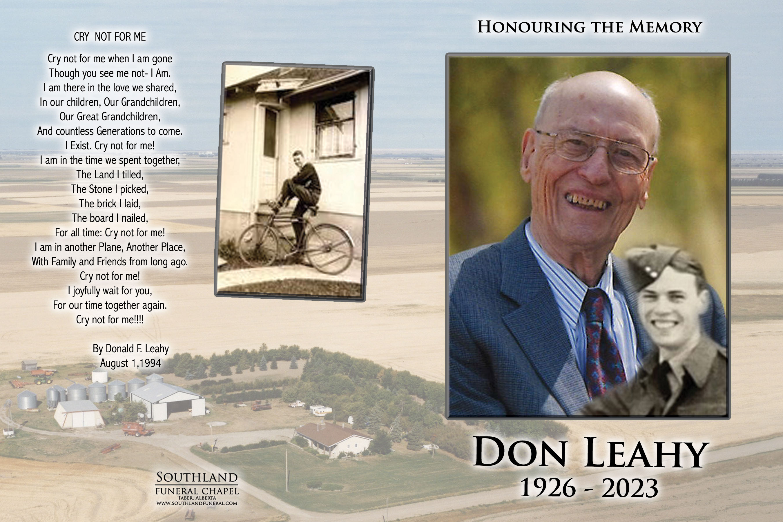 Donald Francis Leahy, born on September 29, 1926 in Drumheller, passed away on Thursday, March 23, 2023 in Taber at the age of 96 years.