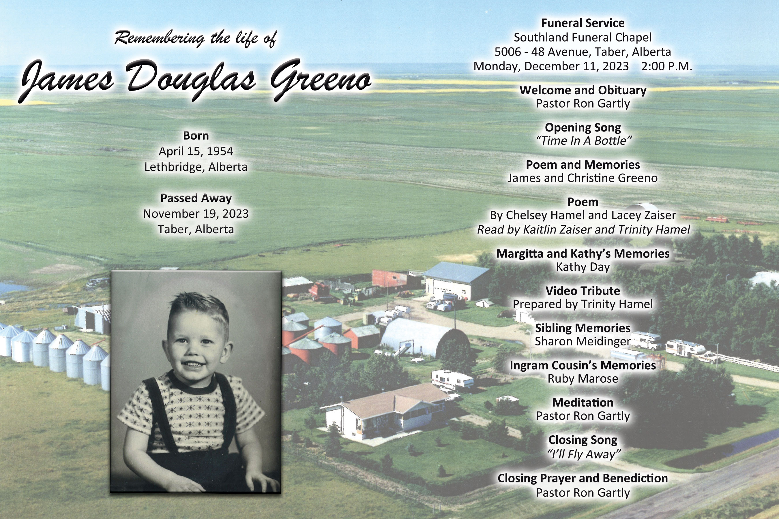 James Douglas Greeno, beloved husband of Margitta Greeno, passed away in Taber on Sunday, November 19, 2023 at the age of 69 years.