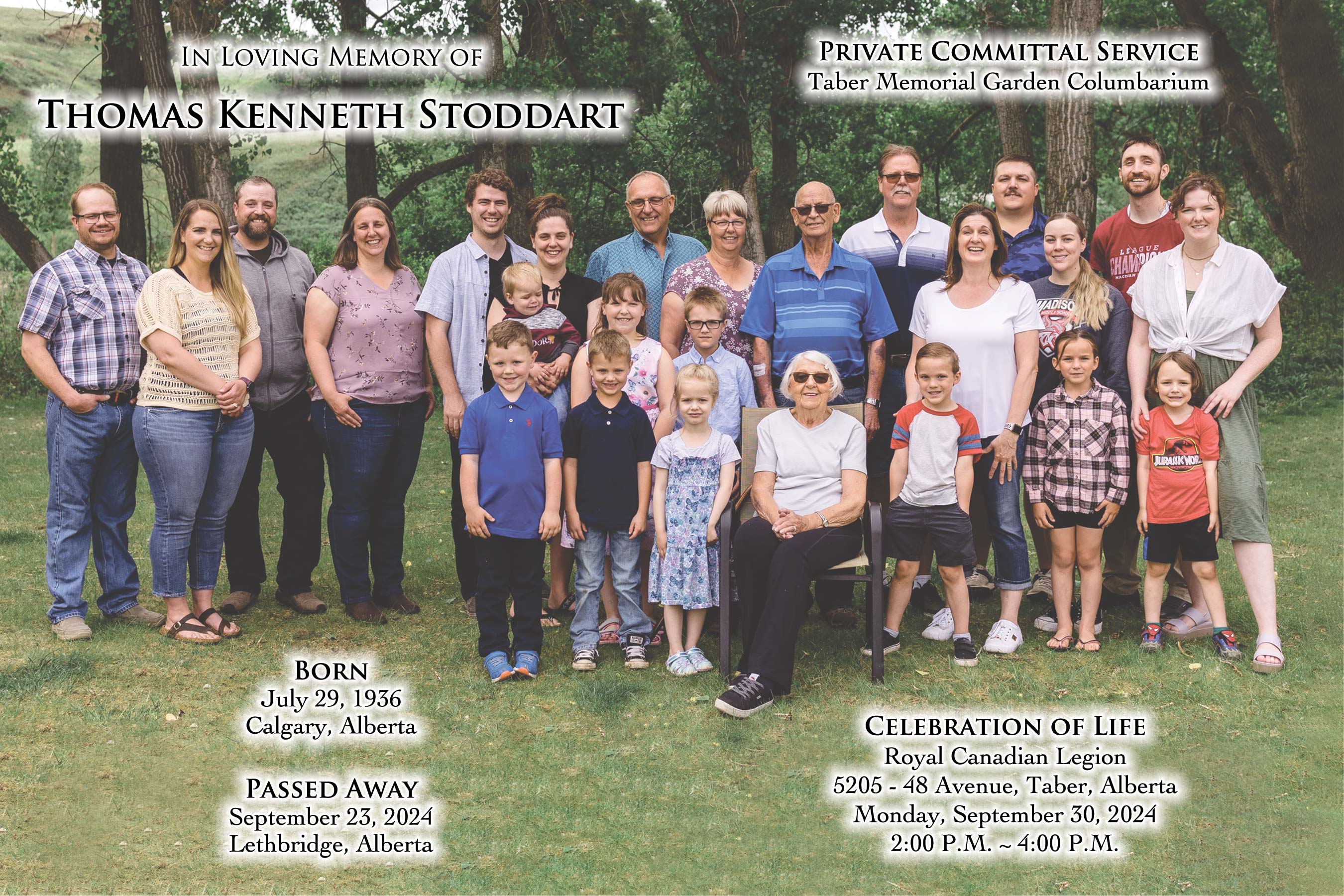 Thomas Kenneth Stoddart, beloved husband of Sheila Stoddart, passed away in Lethbridge on Monday, September 23, 2024 at the age of 88 years.