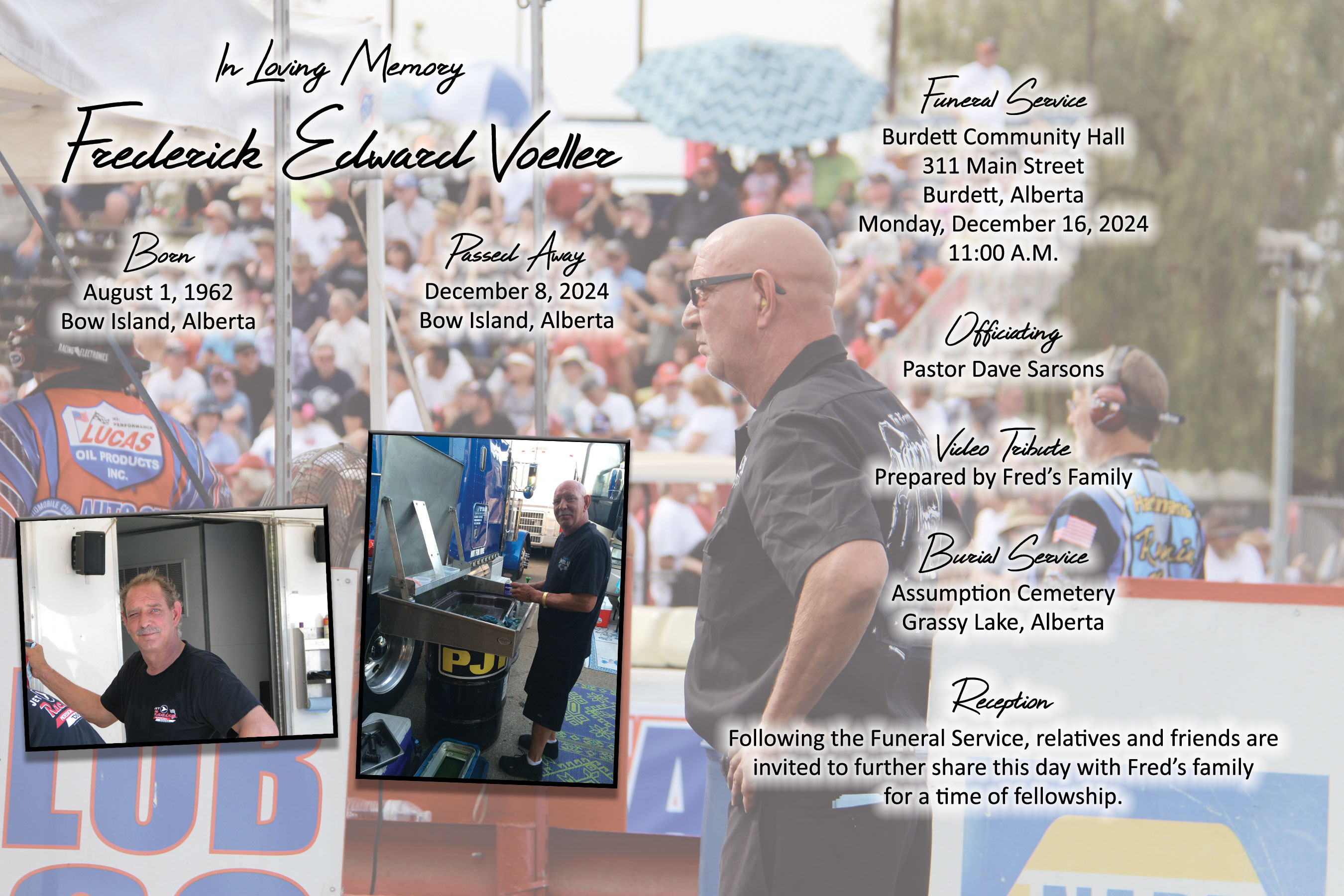 Frederick Edward Voeller, passed away in Bow Island on Sunday, December 8, 2024 at the age of 62 years.