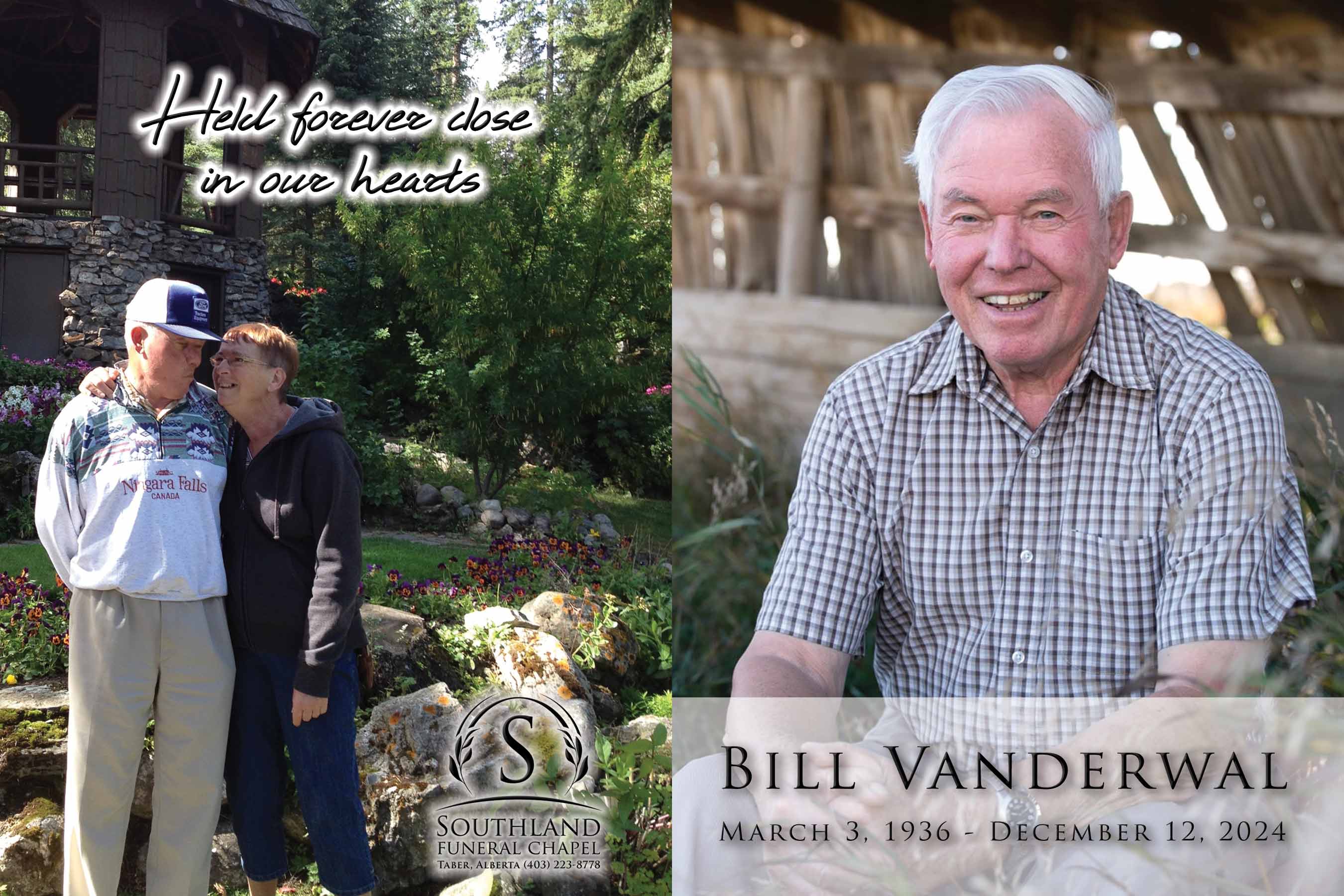 William Vanderwal, beloved husband of Leni Vanderwal, passed away in Taber on Thursday, December 12, 2024 at the age of 88 years.