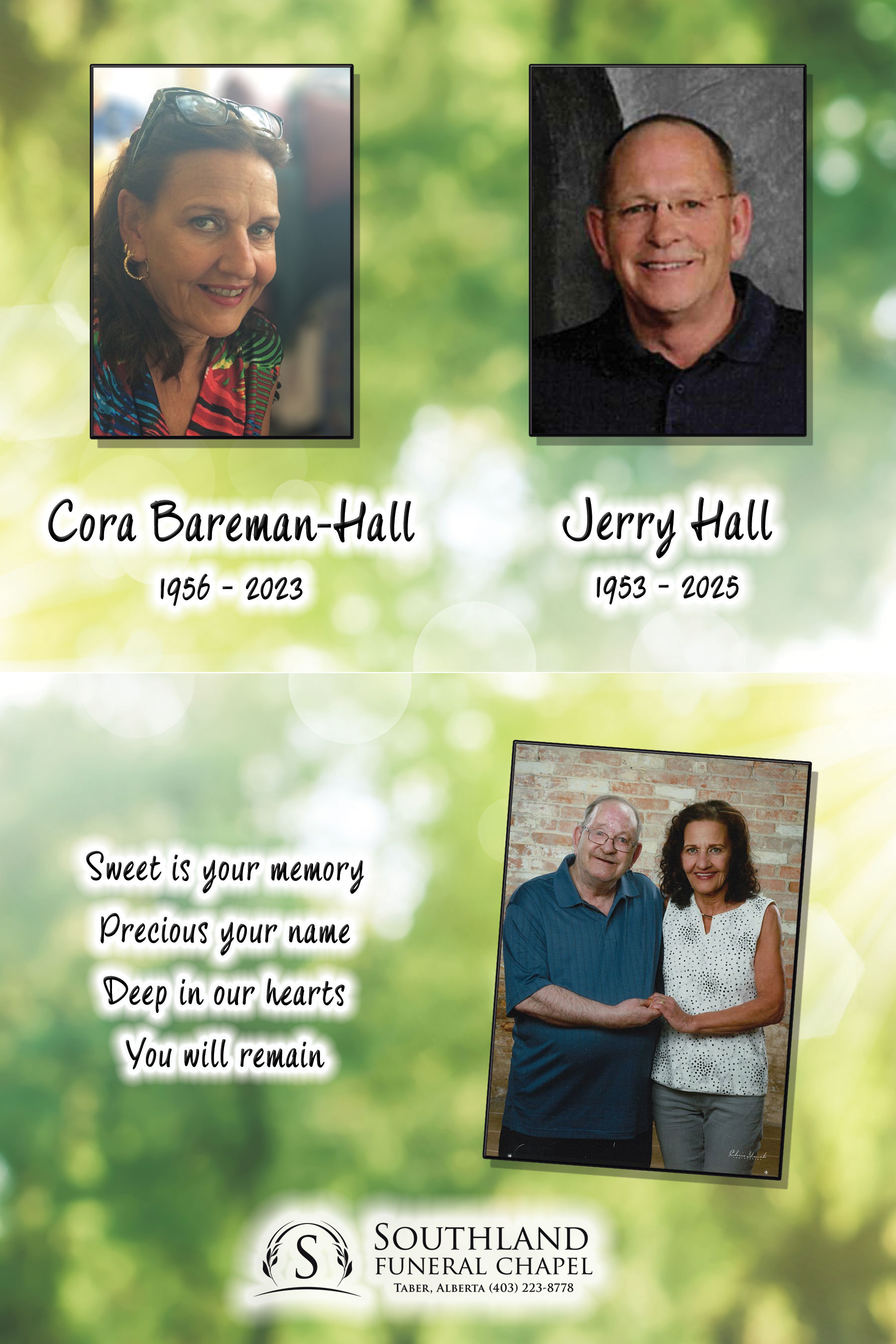 Jerry Evan Hall, beloved husband of the late Cora Bareman-Hall, passed away peacefully in Taber on Tuesday, August 19, 2025 at the age of 72 years.
