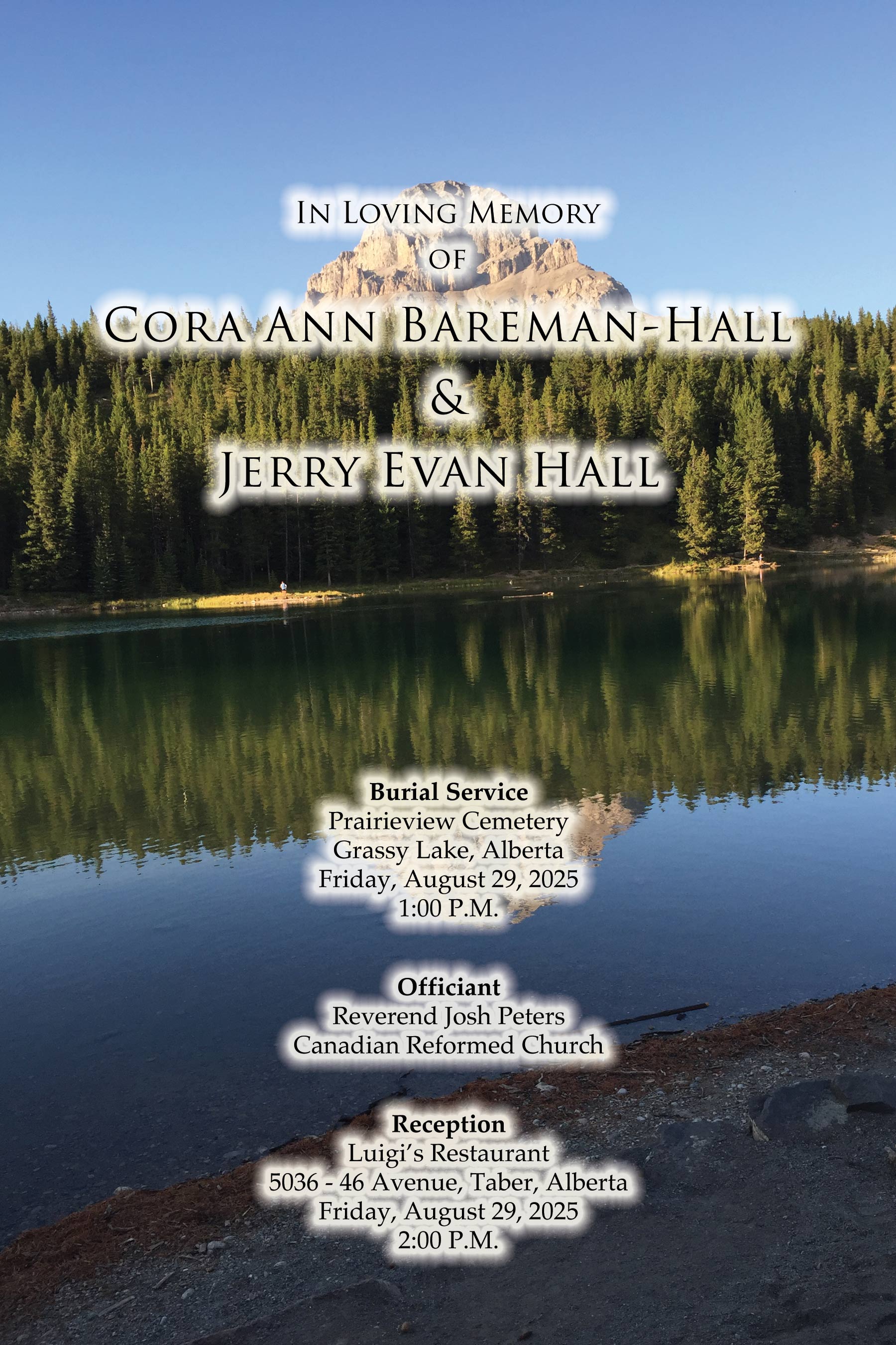 The Burial Service for Jerry, along with Cora who passed away in 2023, was held at the Prairieview Cemetery, Grassy Lake on Friday, August 29, 2025 at 1:00 P.M.