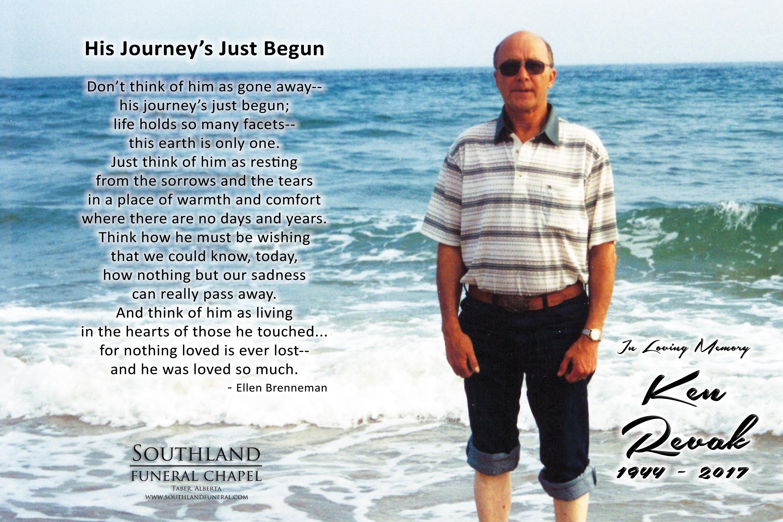 Relatives and friends were invited to Prayers at Southland Funeral Chapel, 5006 - 48 Avenue, Taber on Wednesday, January 11, 2017 at 7:00 P.M.