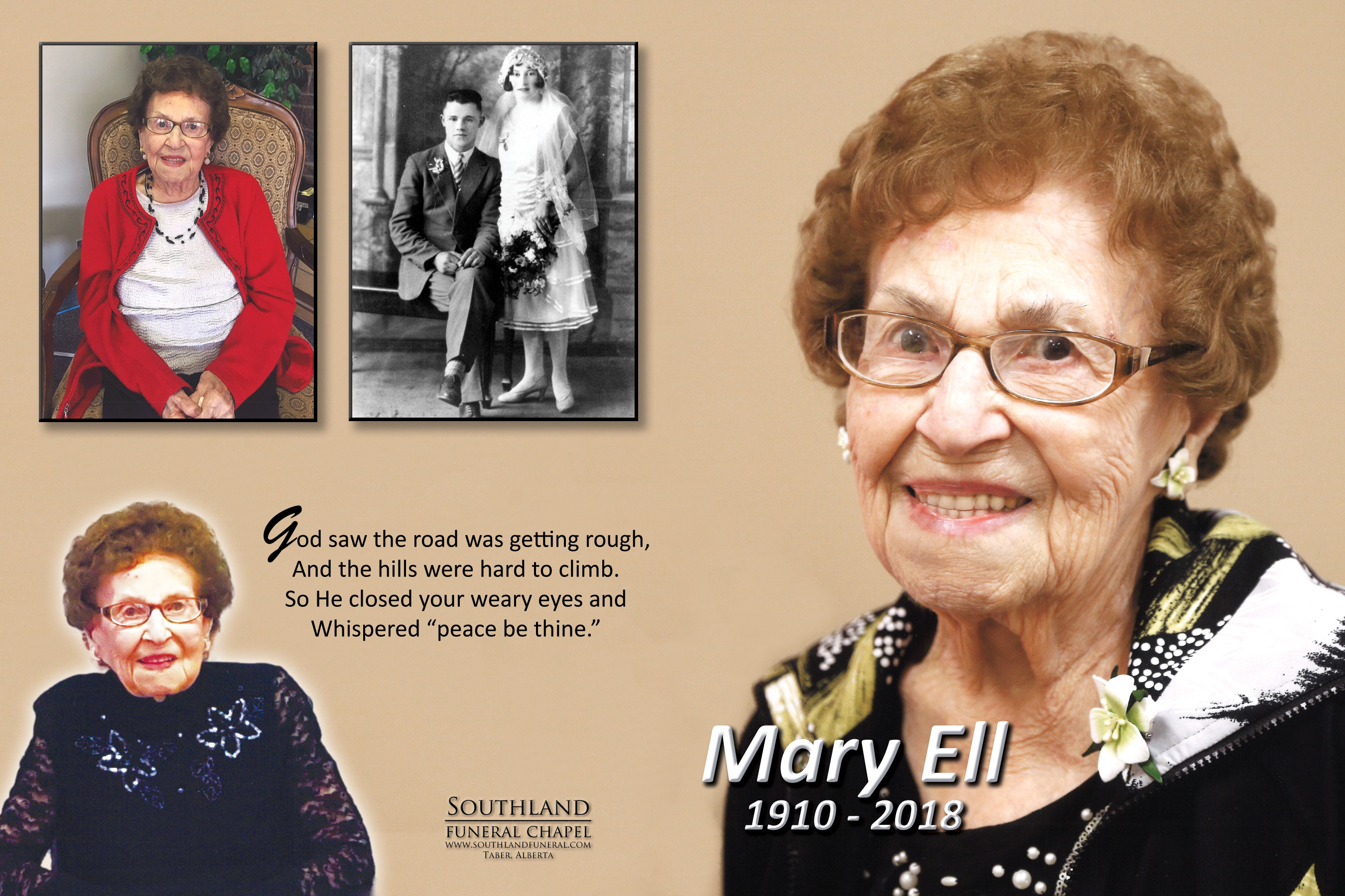 It is with great sadness that we announce the passing of a grand lady. God called another angel home, Mary Magdalena Ell on Tuesday, January 30, 2018 at the age of 107 years.