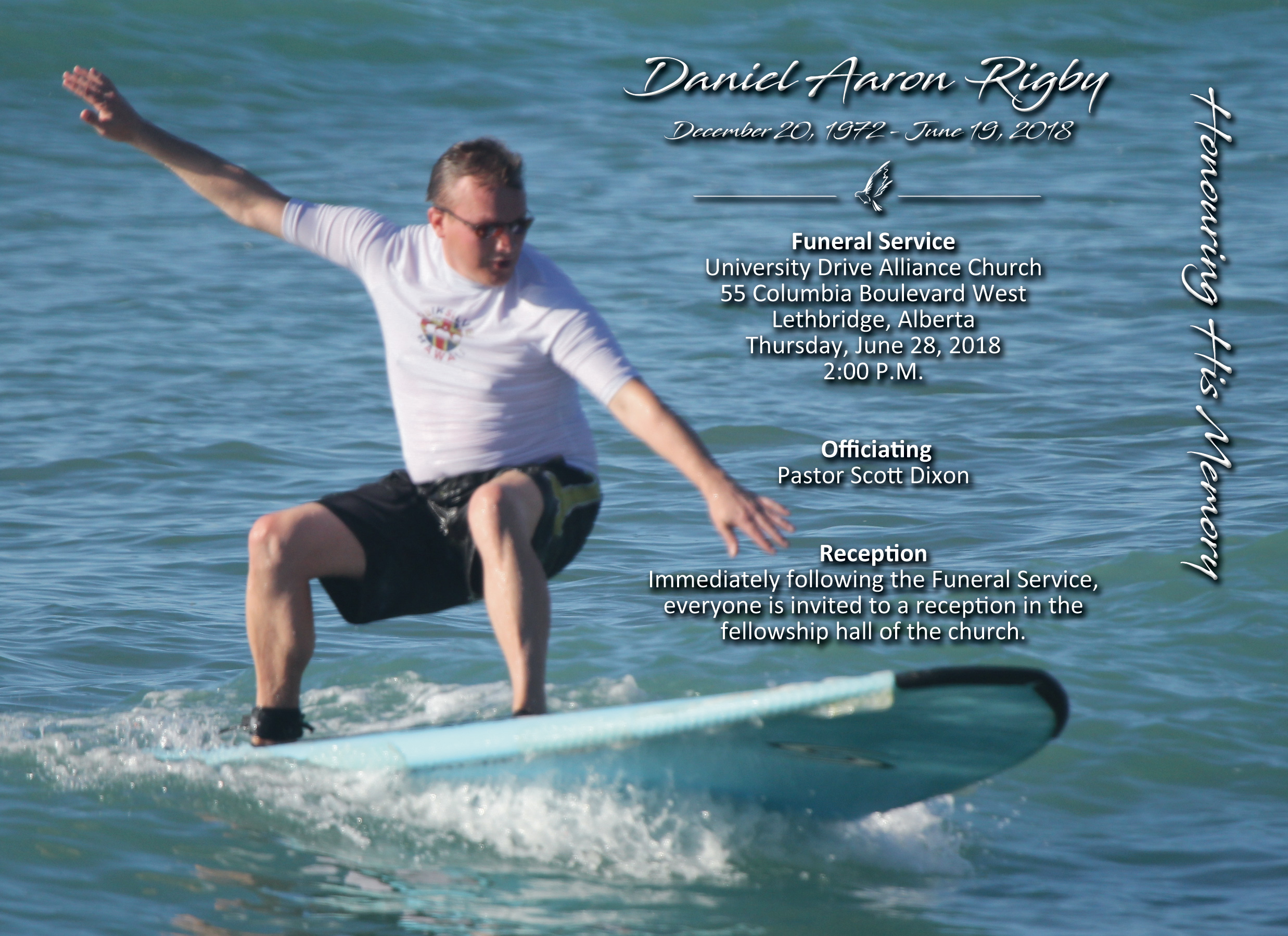 The Funeral Service was held at the University Drive Alliance Church, 55 Columbia Boulevard West, Lethbridge on Thursday, June 28, 2018 at 2:00 P.M.