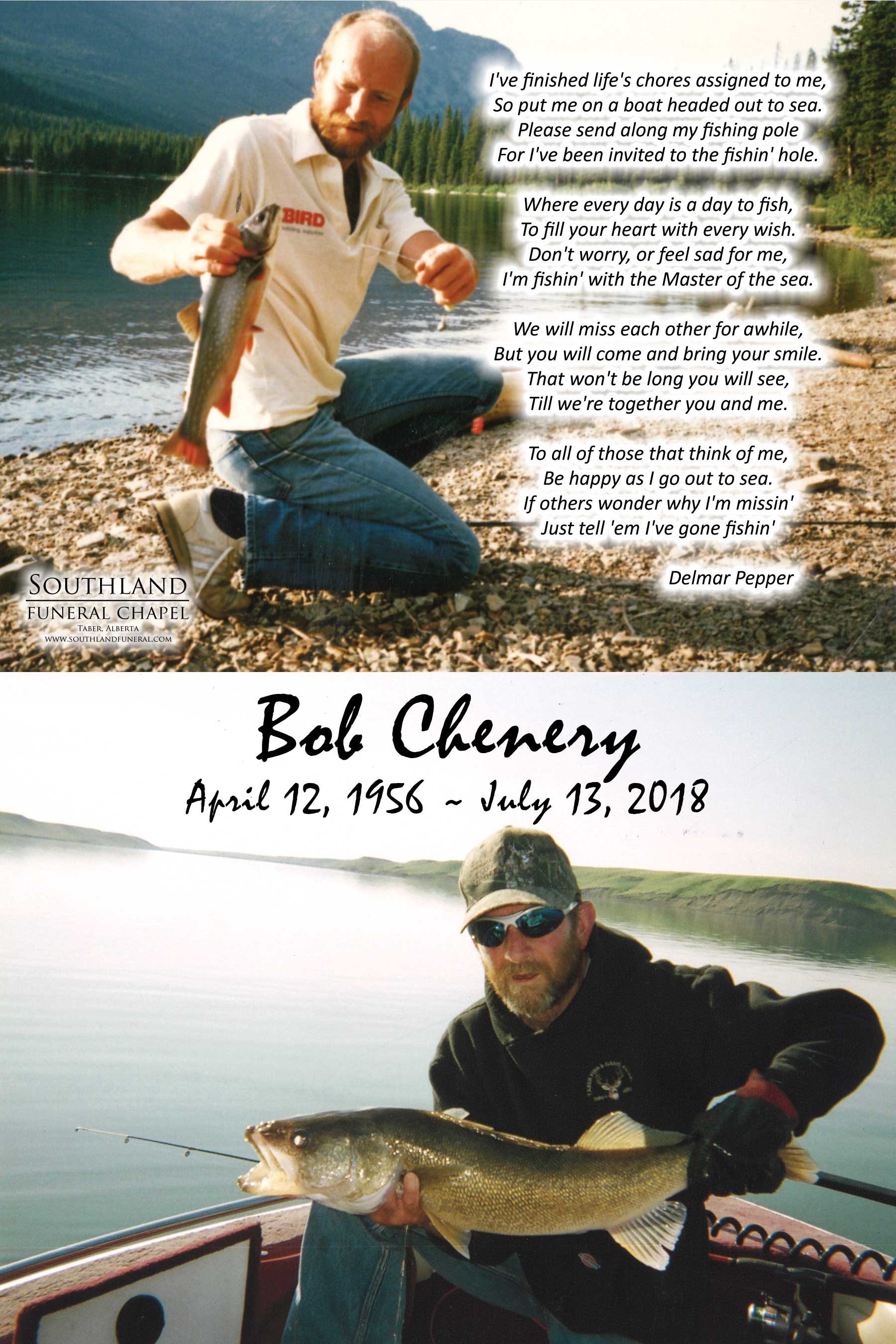 Bob spent many years working in irrigation and was well known in the farming community. He was an outdoorsman who loved hunting and fishing and shared this passion with his daughter Jaela. Bob had been involved with Taber Fish and Game and he followed the Walleye Trail for many years.