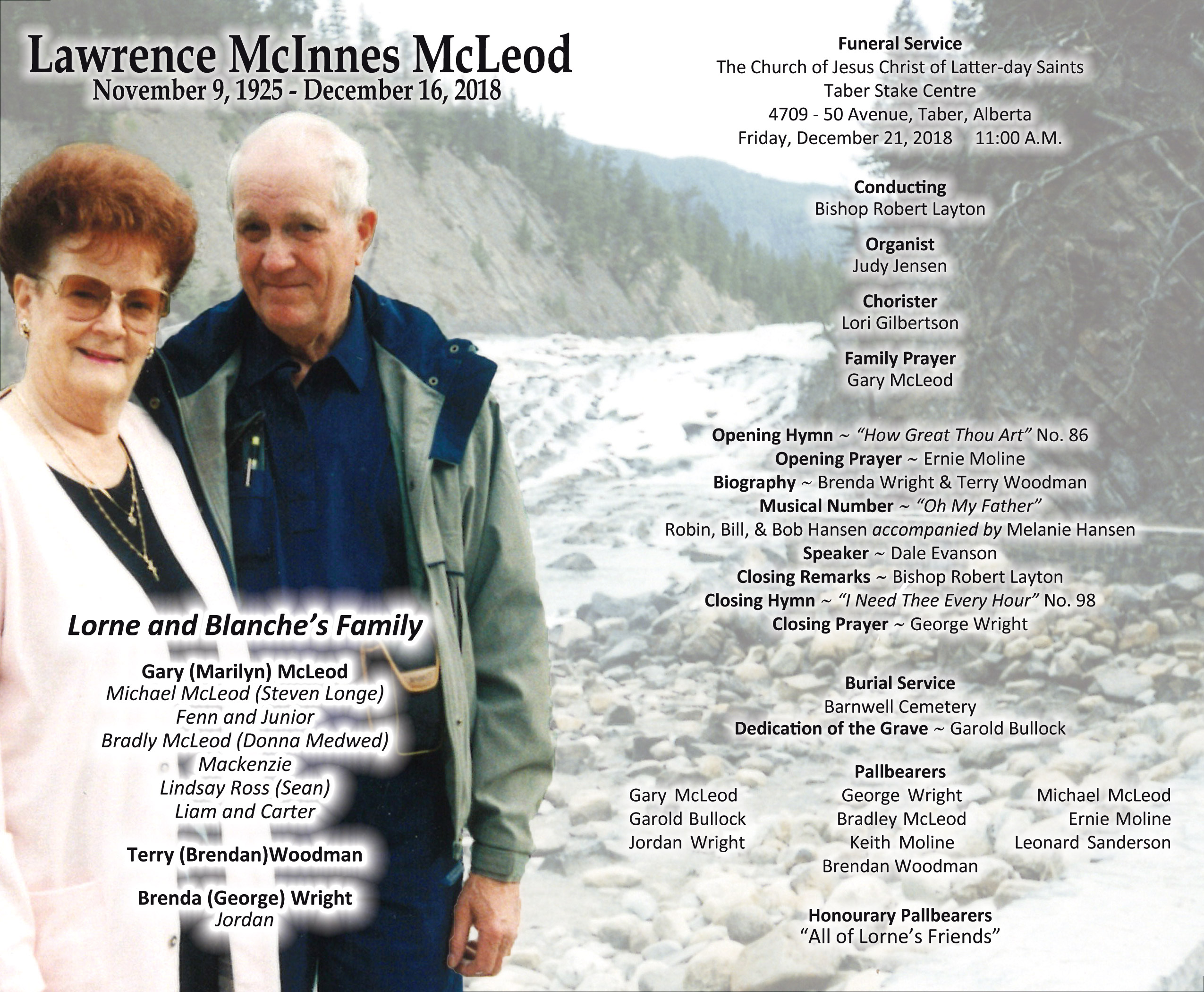 Lawrence McInnes McLeod, beloved husband, father, grandfather and friend, passed away in Taber on Sunday, December 16, 2018 at the age of 93 years.