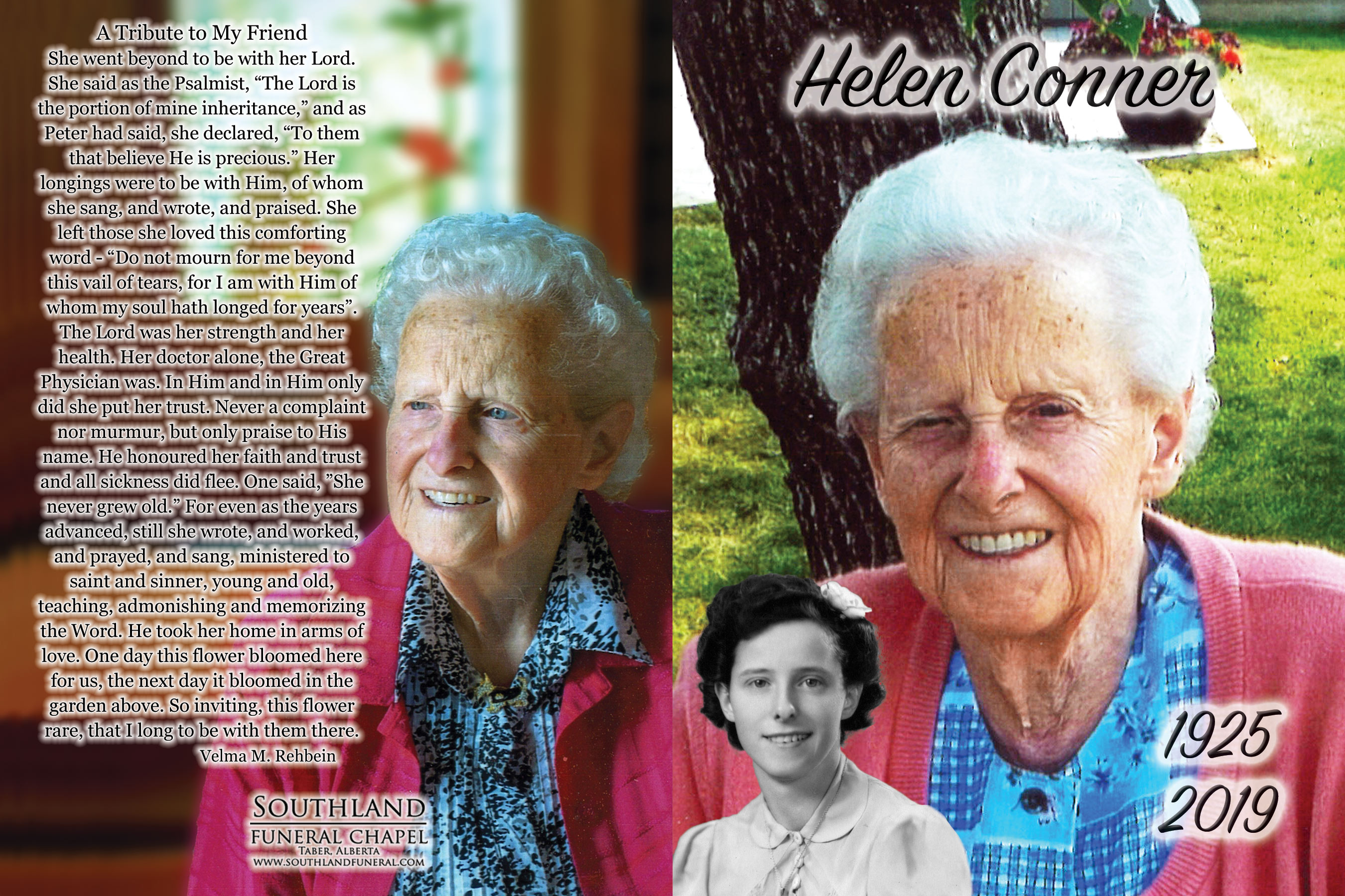 Helen Mamie Conner, formerly of Vauxhall, passed away in Taber on Thursday, March 21, 2019 at the age of 93 years.