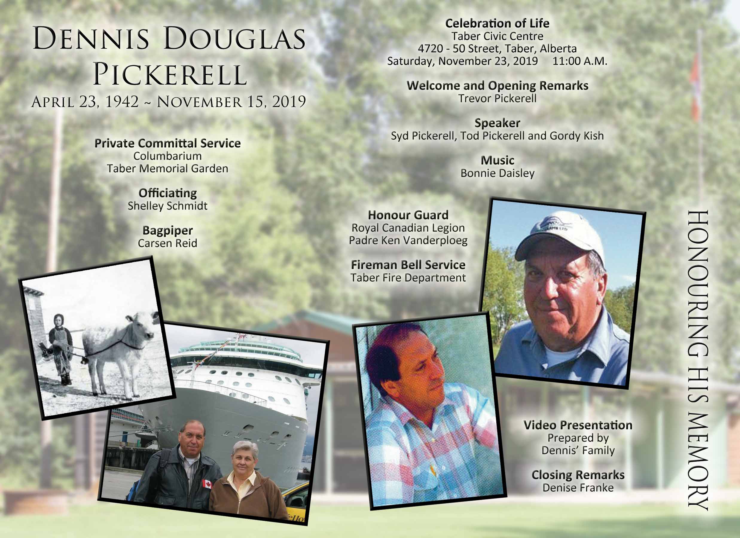 The Funeral Service was held at the Taber Civic Centre, 4720 - 50 Street, Taber on Saturday, November 23, 2019 at 11:00 A.M.