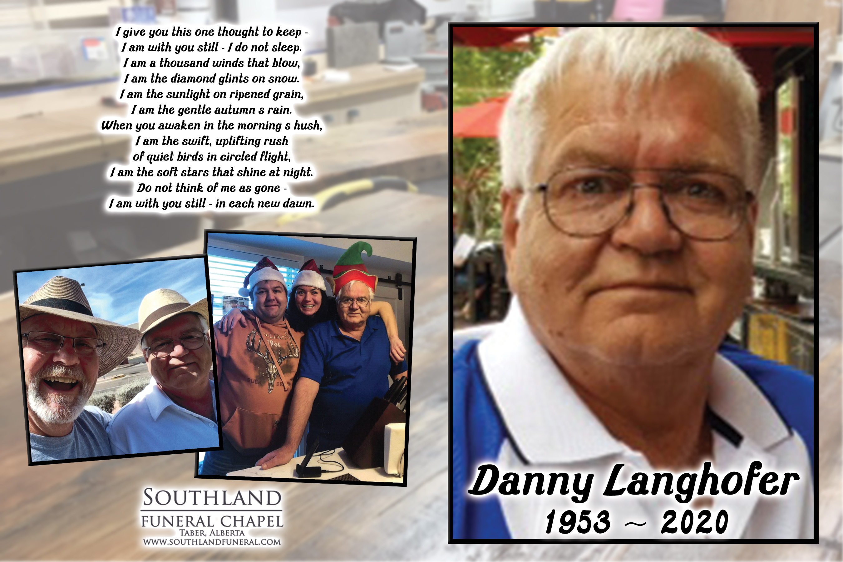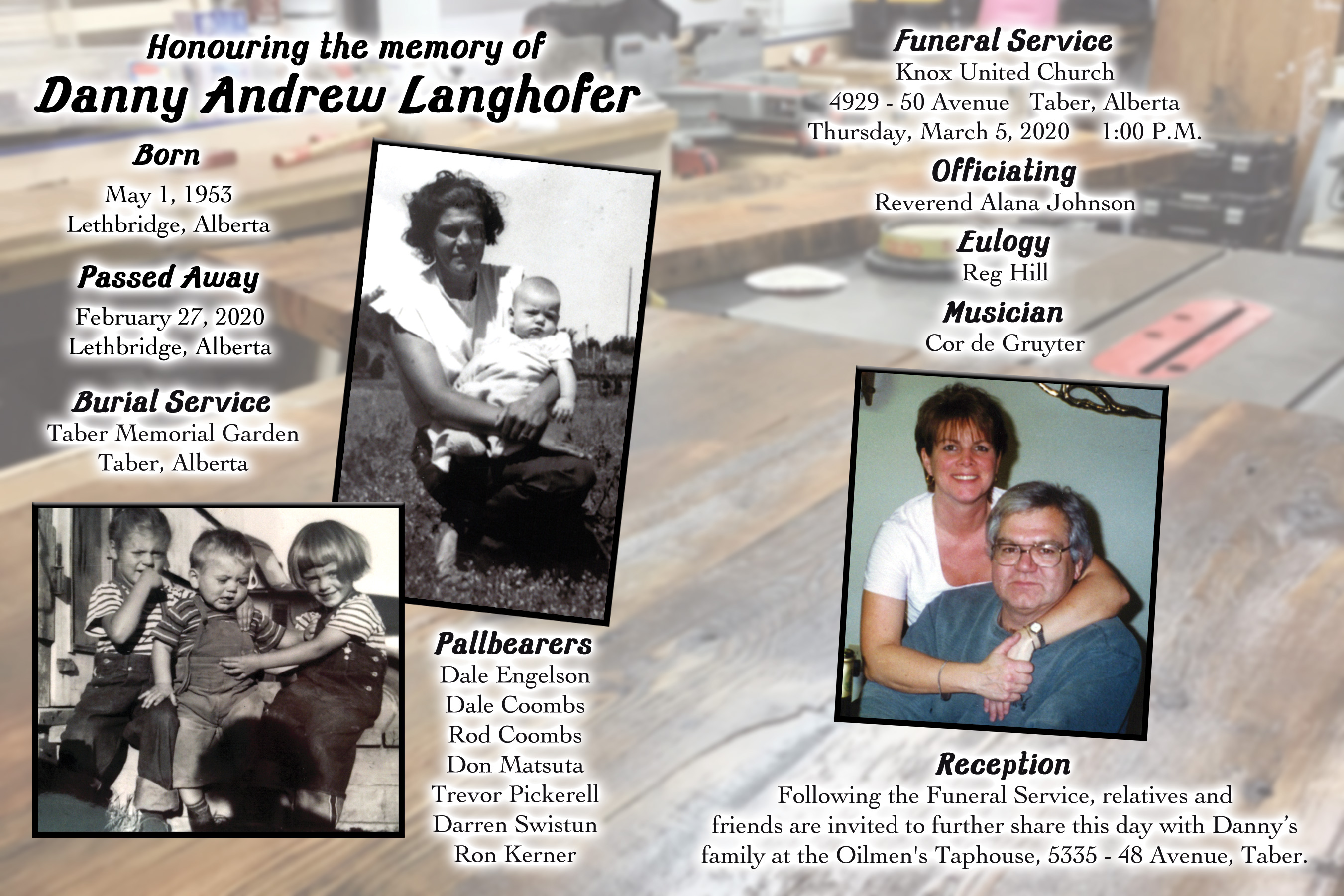 Our beloved husband, father, grandfather, son and brother, Danny Andrew Langhofer passed away in Lethbridge on Thursday, February 27, 2020 at the age of 66 years.