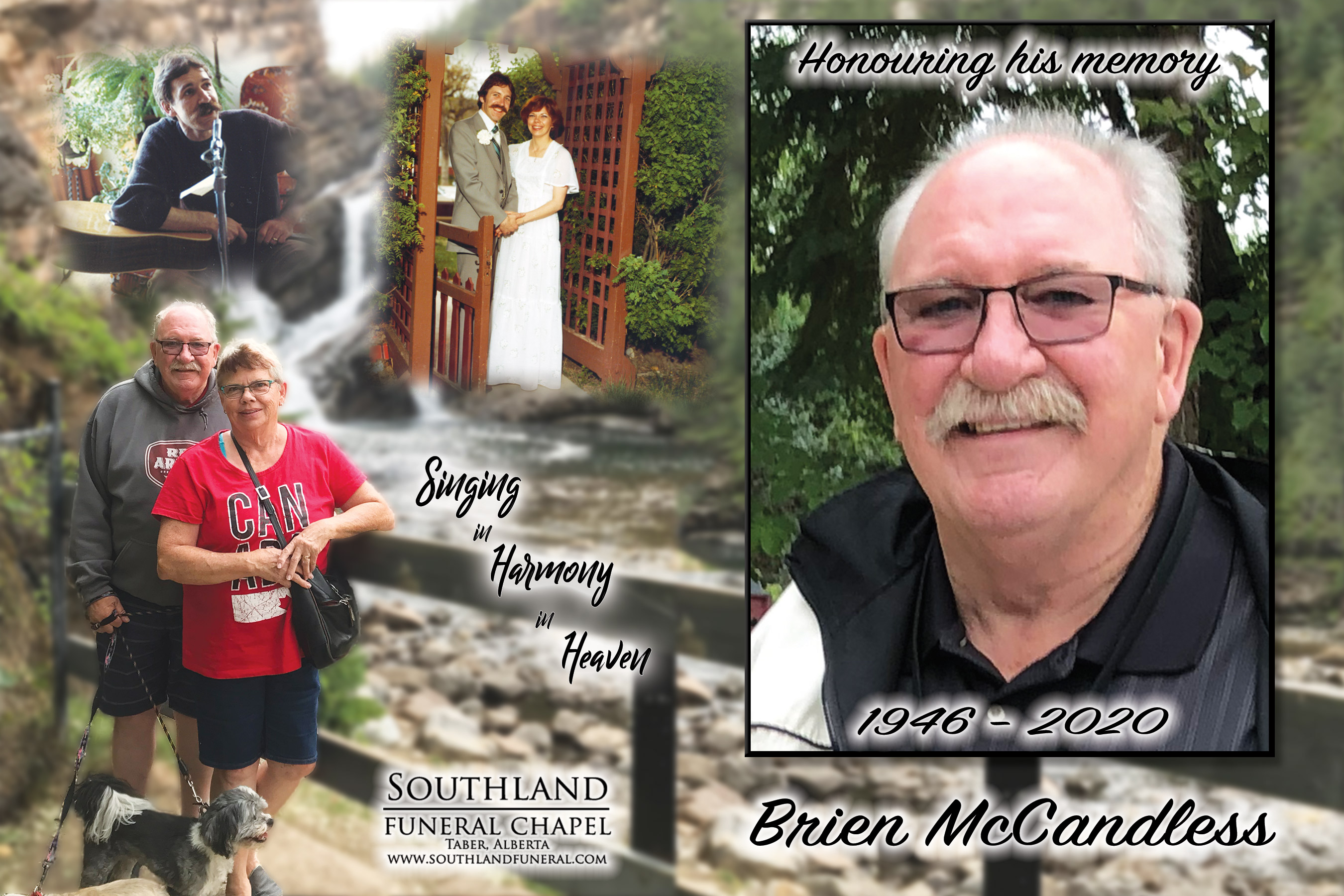 Brien was born in Londonderry, Northern Ireland on June 30, 1946. He immigrated to Canada, settling in Winnipeg, Manitoba in November 1956 with his two younger brothers, mum and grandmother. They joined his father who had already come to Canada six months earlier to find work. The McCandless family were known to open their hearts and home to others as they made their way to Winnipeg from their native Ireland. Brien was raised in a musical family and sang tenor with the Hymn Sing Choir that aired on CBC. He sang with numerous church choirs, choral groups, with dear friends and family and when asked, he would sing for a funeral or a wedding or other special occasions.
