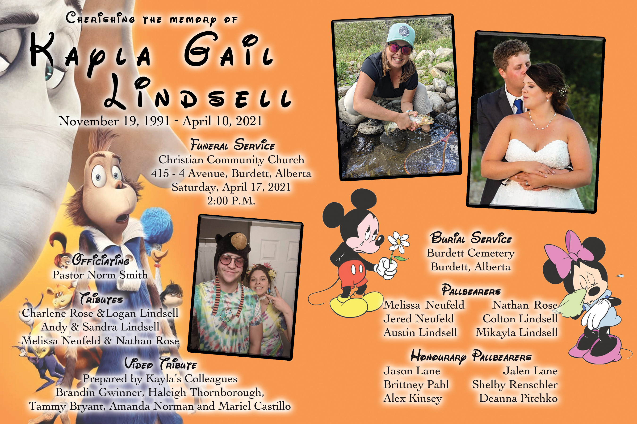 Kayla Gail Lindsell (nee Rose), beloved wife of Logan Lindsell, passed away in Drumheller on Saturday, April 10, 2021 at the age of 29 years.