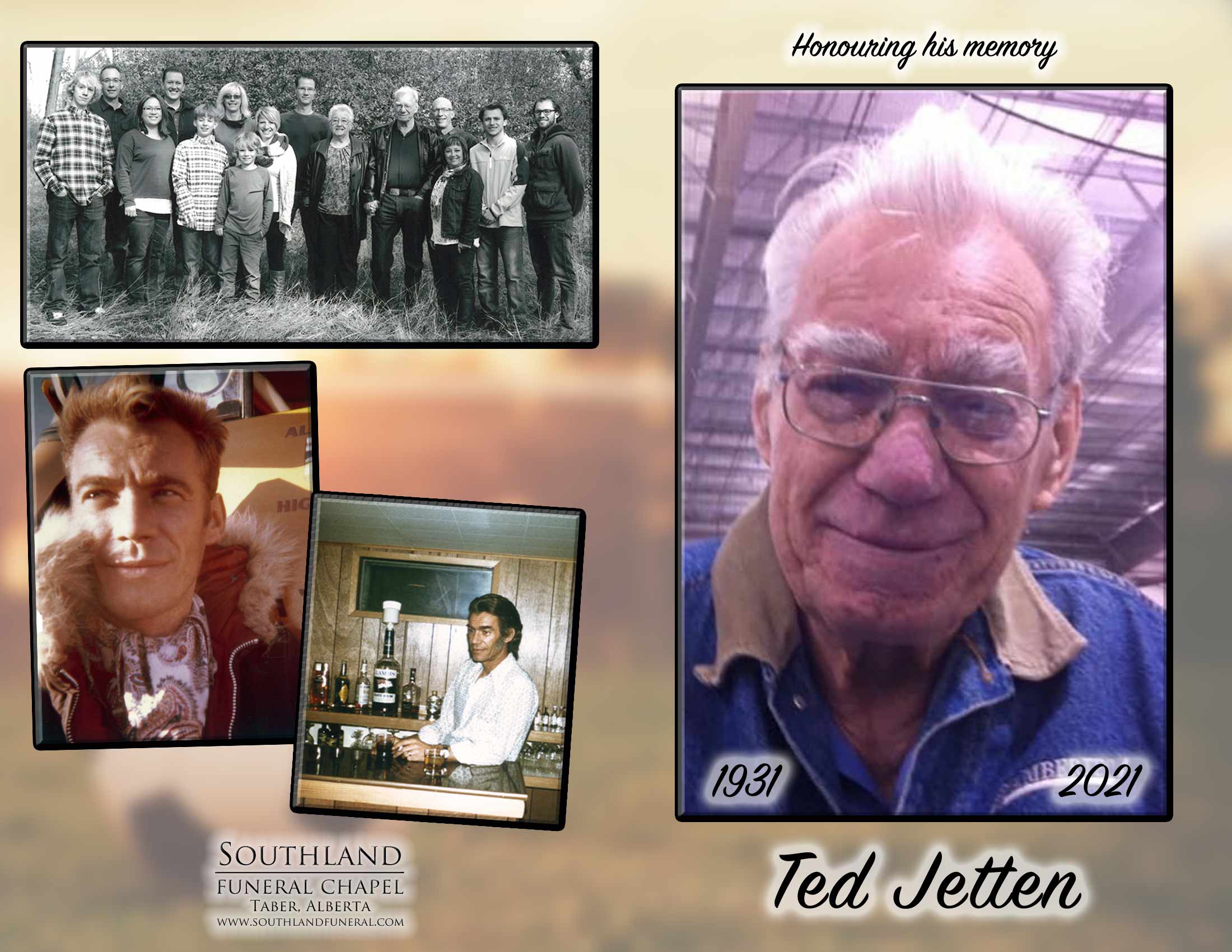 Ted is lovingly remembered by his wife Jo "Josie, Josephine"; eldest son Dean (LeeAnne) Jetten of Lethbridge and their two sons Taylor (Tasya) and Braydon; son Rob (Kelly) Jetten of Lethbridge and Rob’s children Nolan and Shaun; daughter Lisa (Bill) Halma of Lethbridge; youngest daughter Niki (Chris) McIntyre of Lethbridge and their son Xander.