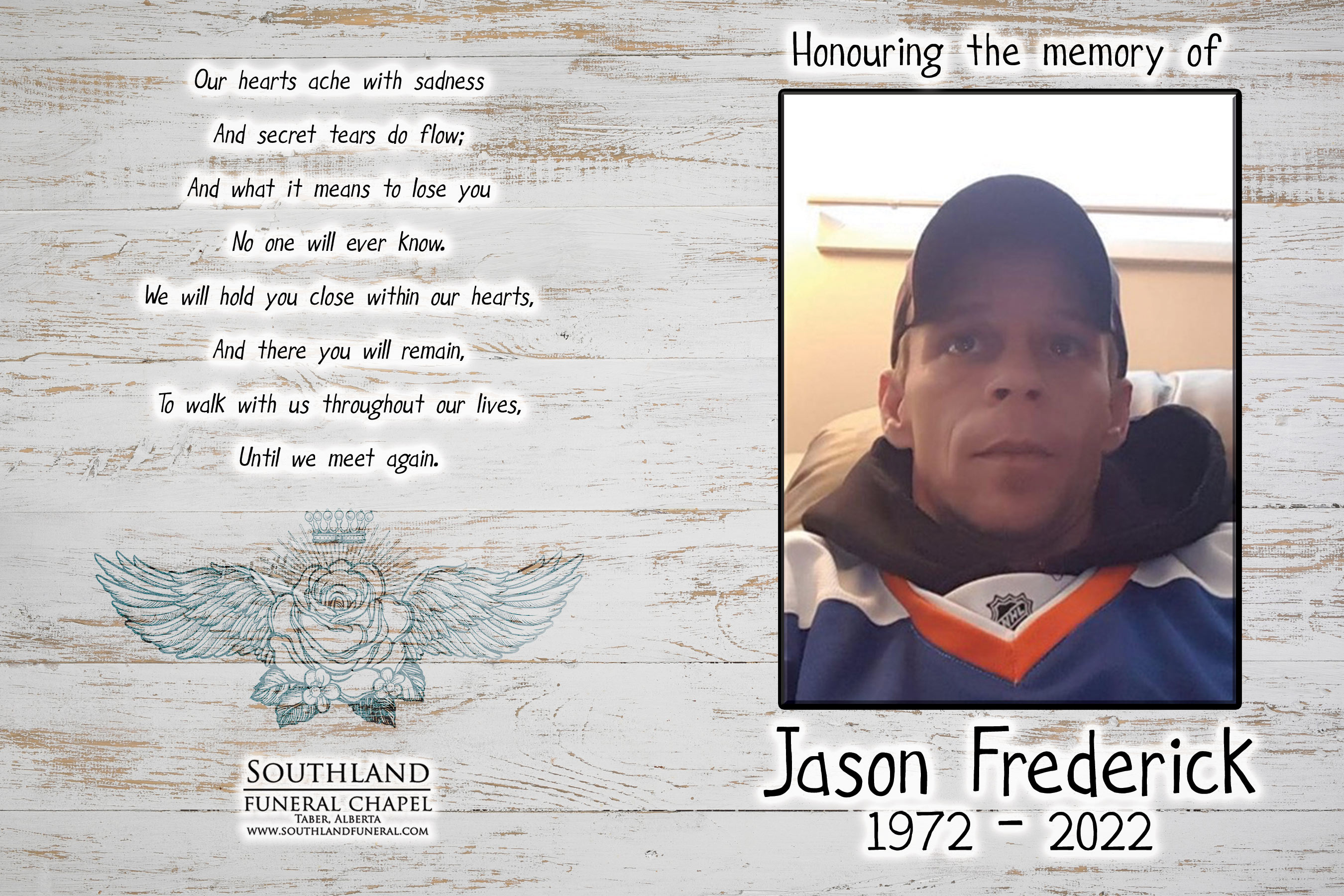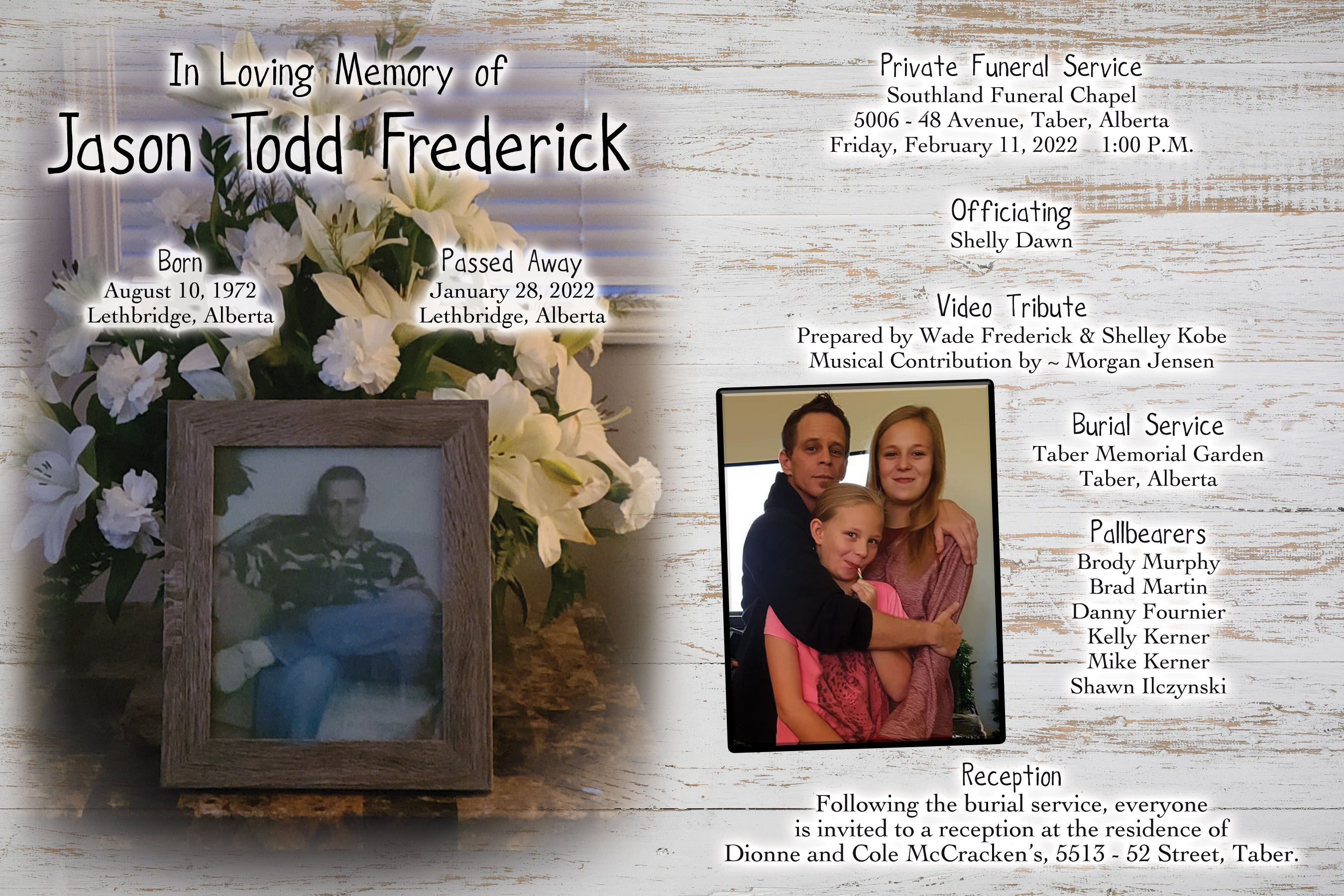 Jason Todd Frederick passed away in Lethbridge on Friday, January 28, 2022 at the age of 49 years.