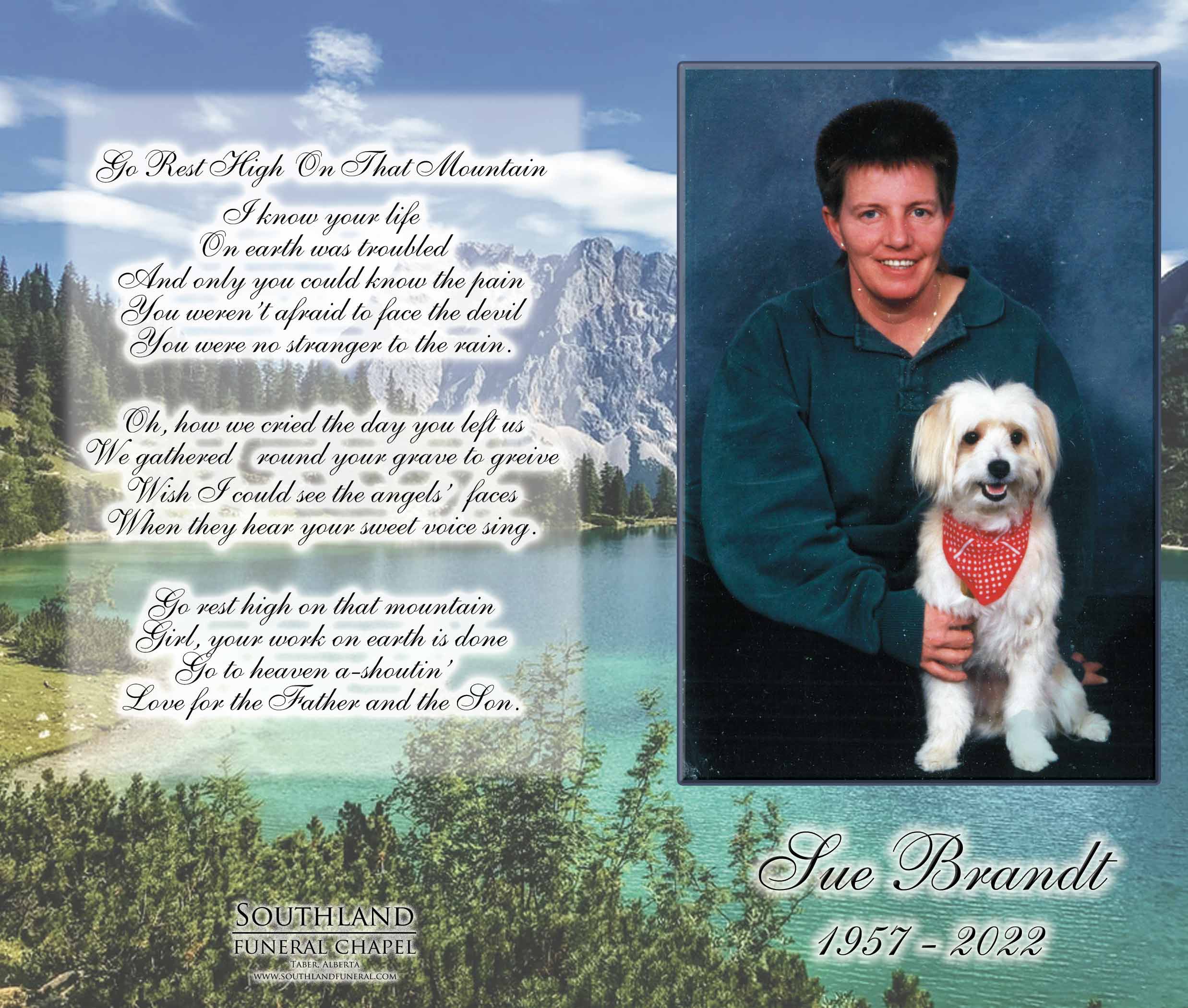 Susan Joan Brandt, longtime resident of the Burdett area, went to be with her Lord Friday, February 4, 2022, at the Chinook Regional Hospital, after a short battle with cancer.