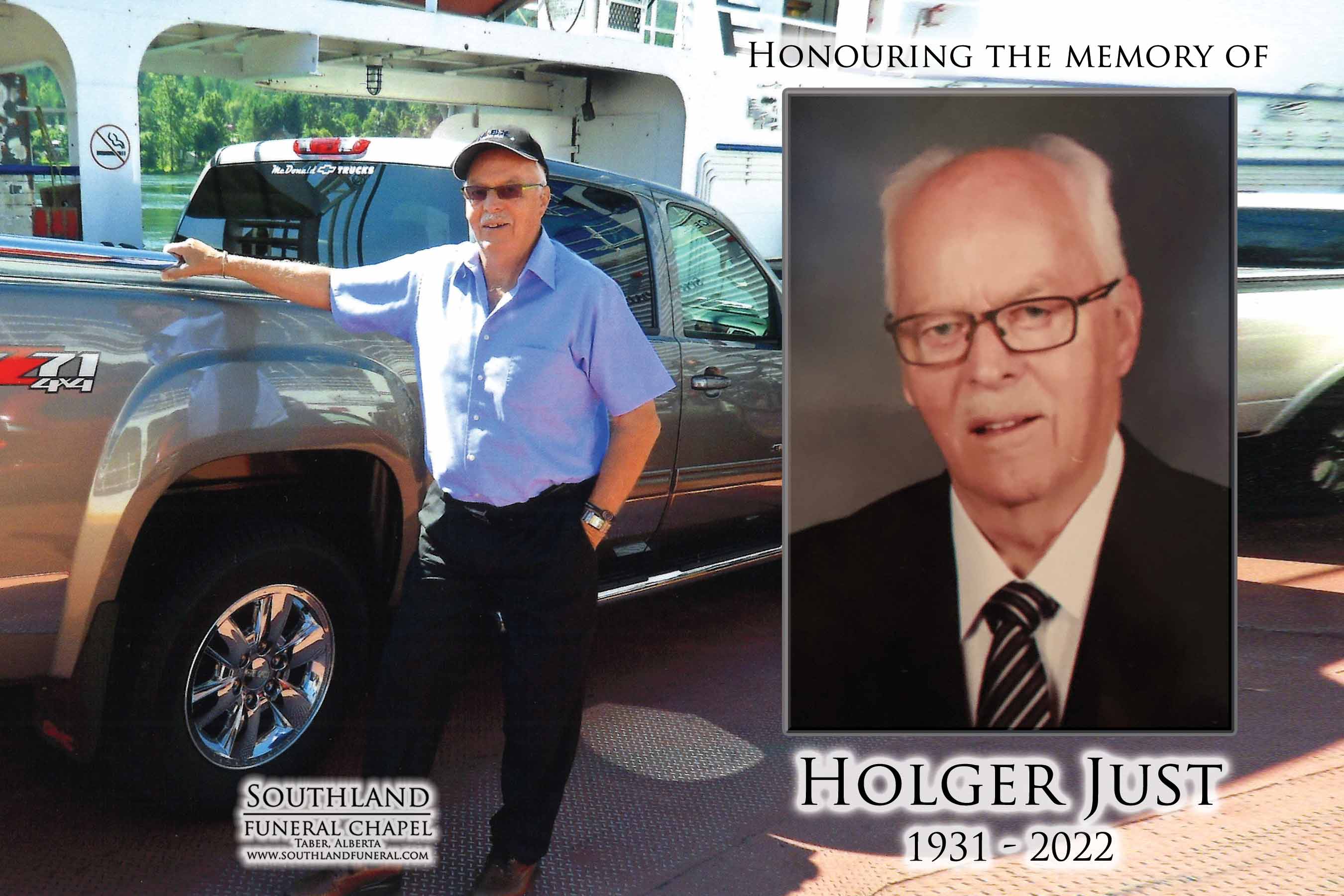 It is with great sadness we share the passing of Holger Just in Taber on Saturday, February 5, 2022 at the age of 90 years. After a long and courageous battle with Parkinson's Disease, Holger passed away peacefully with his family at his side.