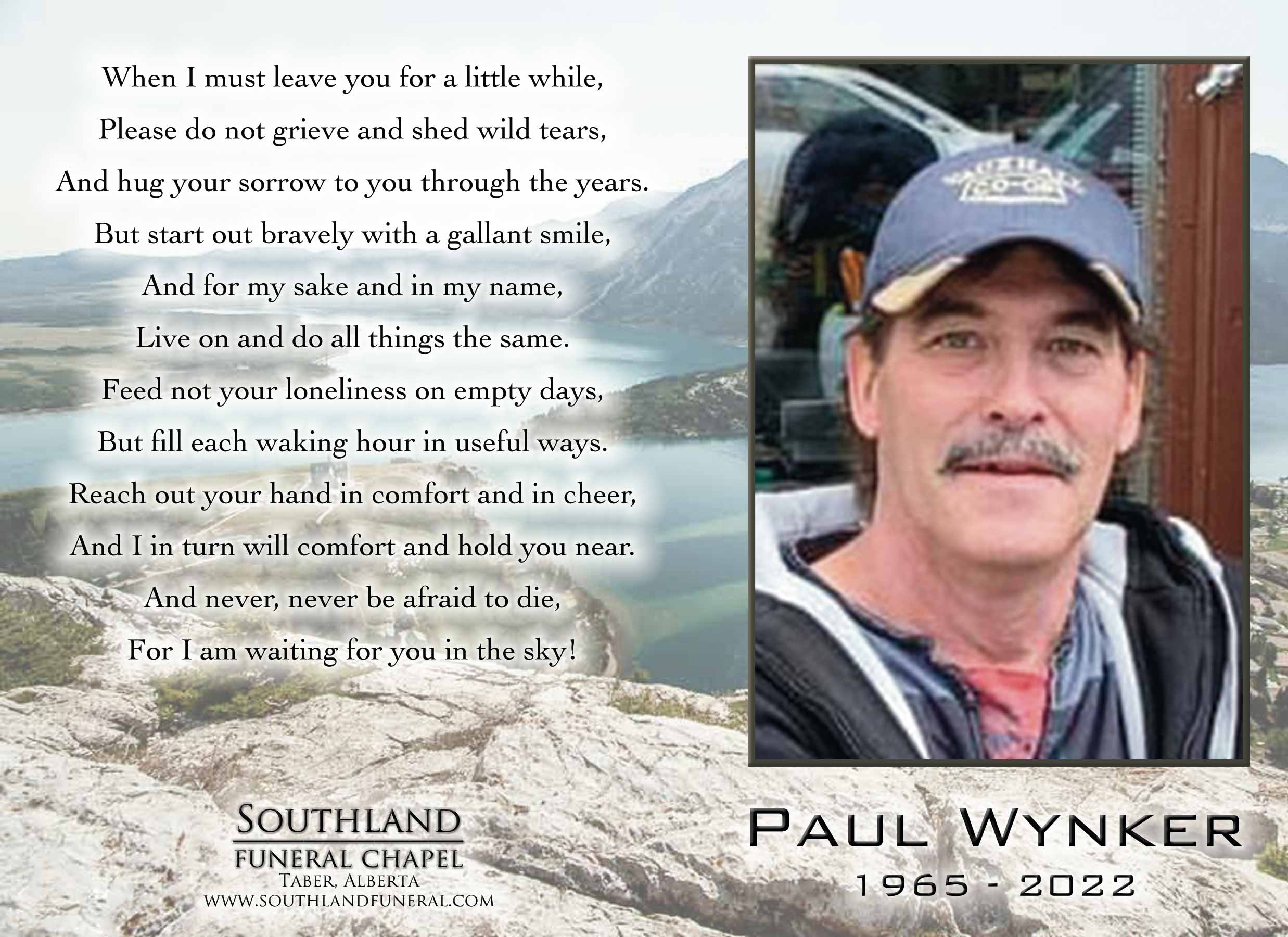 Paul John Wynker, passed away in Lethbridge on Thursday, April 28, 2022 at the age of 56 years.