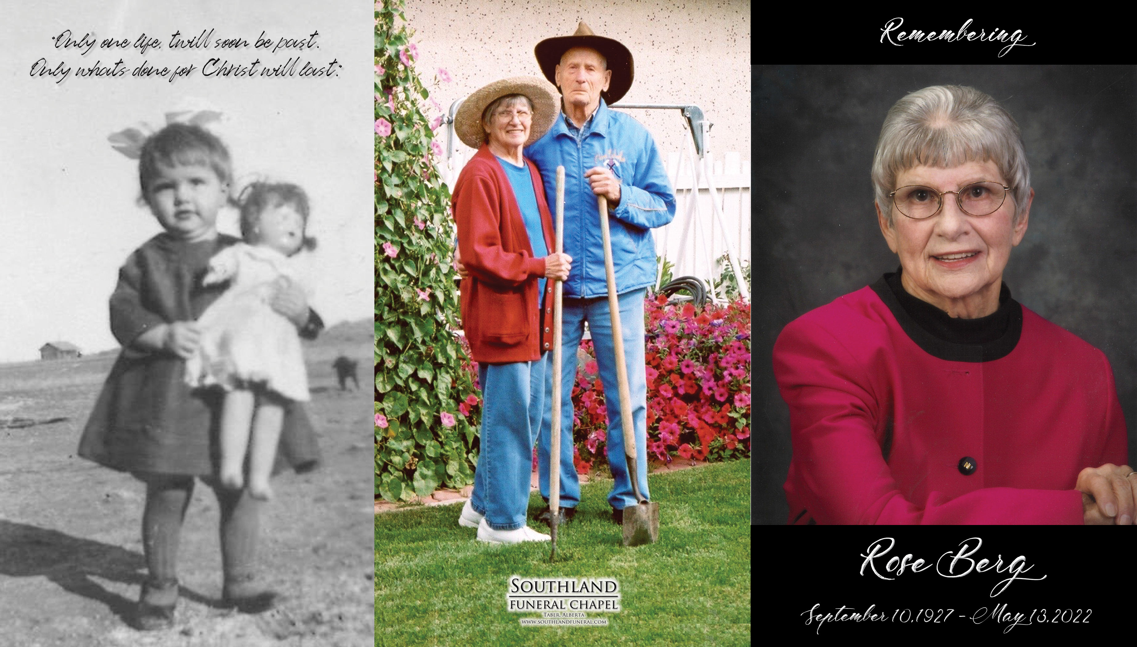 Rose Berg, beloved wife of the late John Berg, passed away in Coaldale on Friday, May 13, 2022 at the age of 94 years.