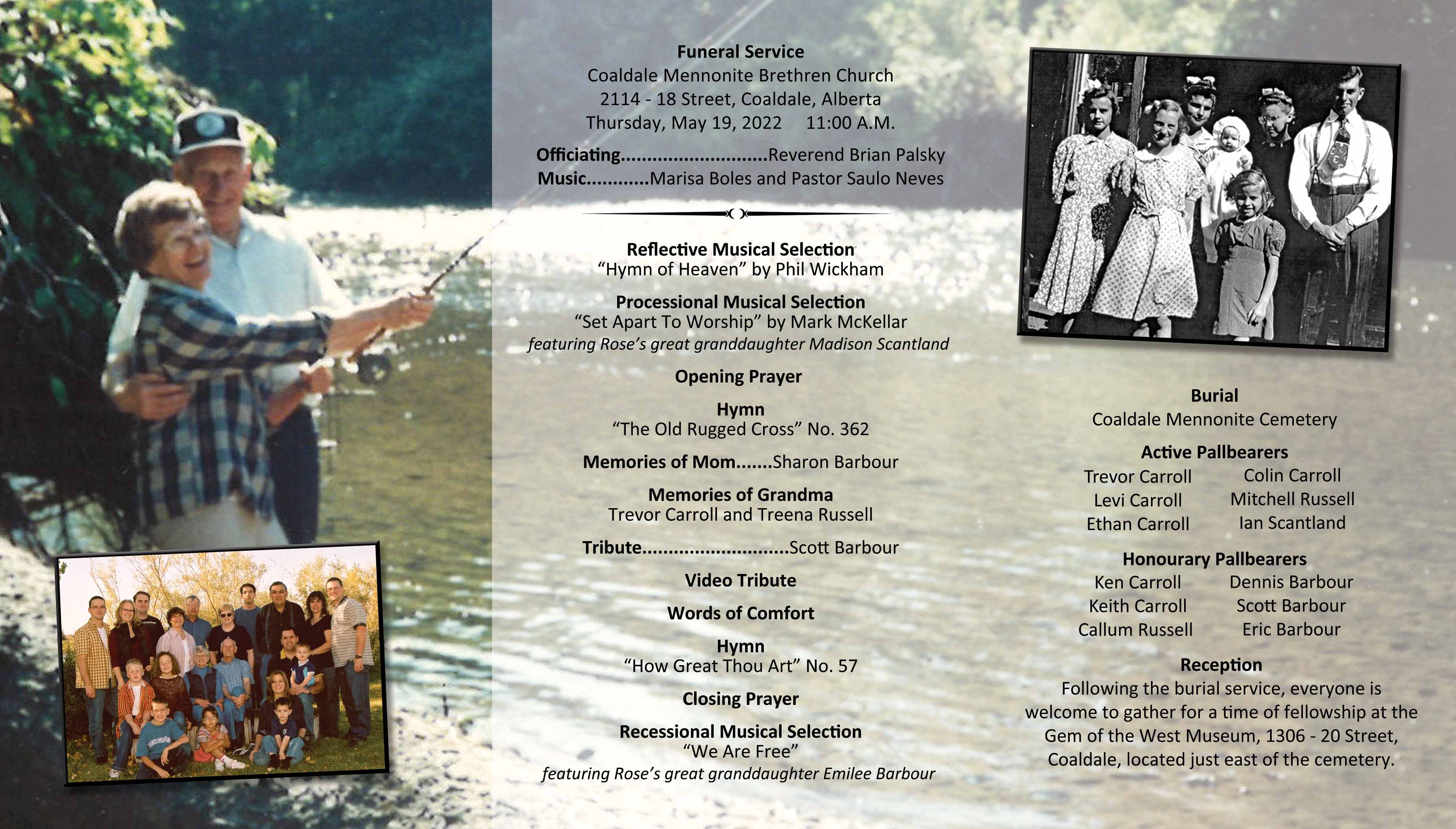 The funeral service was held at the Coaldale Mennonite Brethren Church, 2114 - 18 Street, Coaldale on Thursday, May 19, 2022 at 11:00 A.M. Burial followed at the Coaldale Mennonite Cemetery.