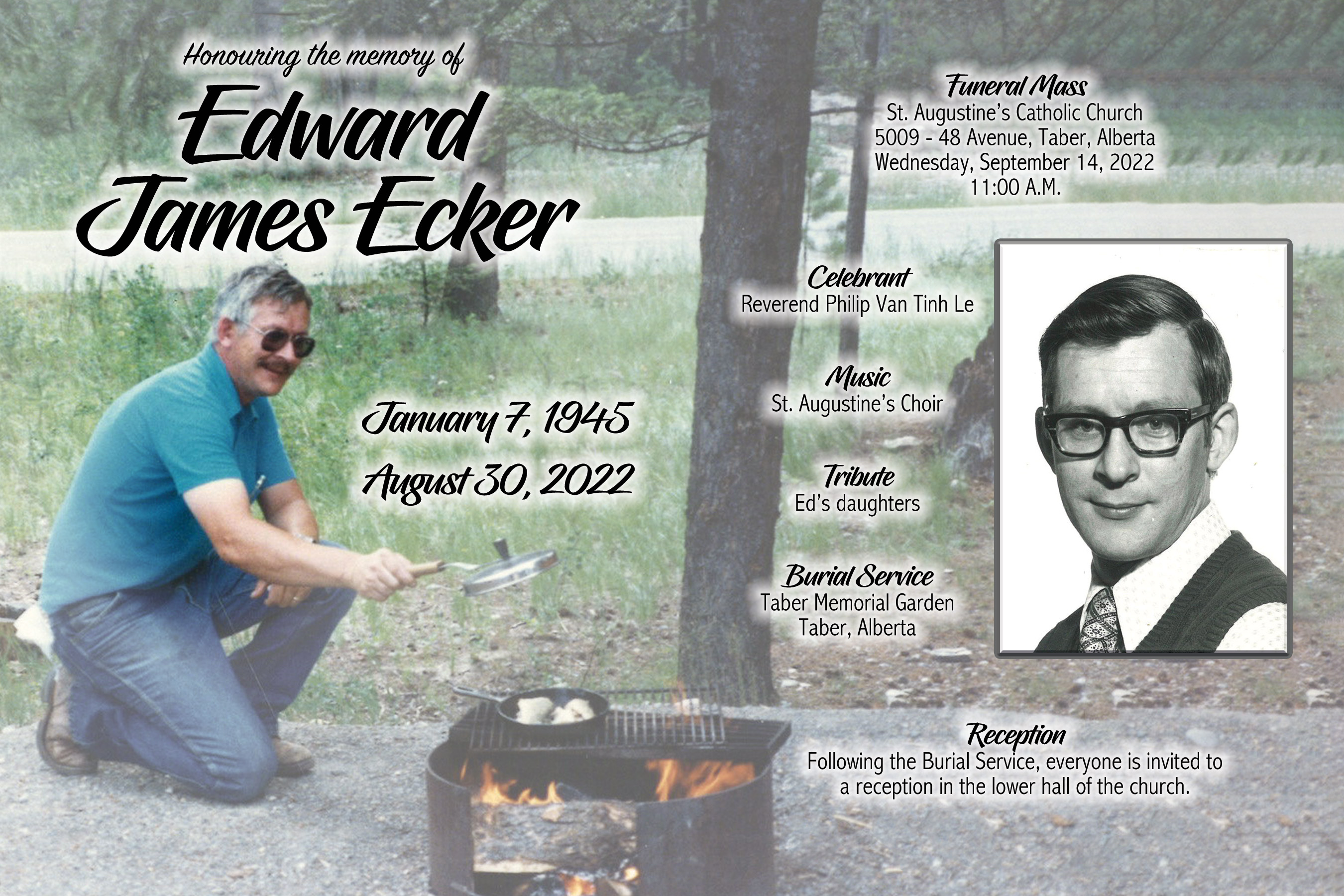 The Funeral Mass was celebrated at St. Augustine’s Catholic Church, 5009 - 48 Avenue, Taber on Wednesday, September 14, 2022 at 11:00 A.M. Burial followed at the Taber Memorial Garden.