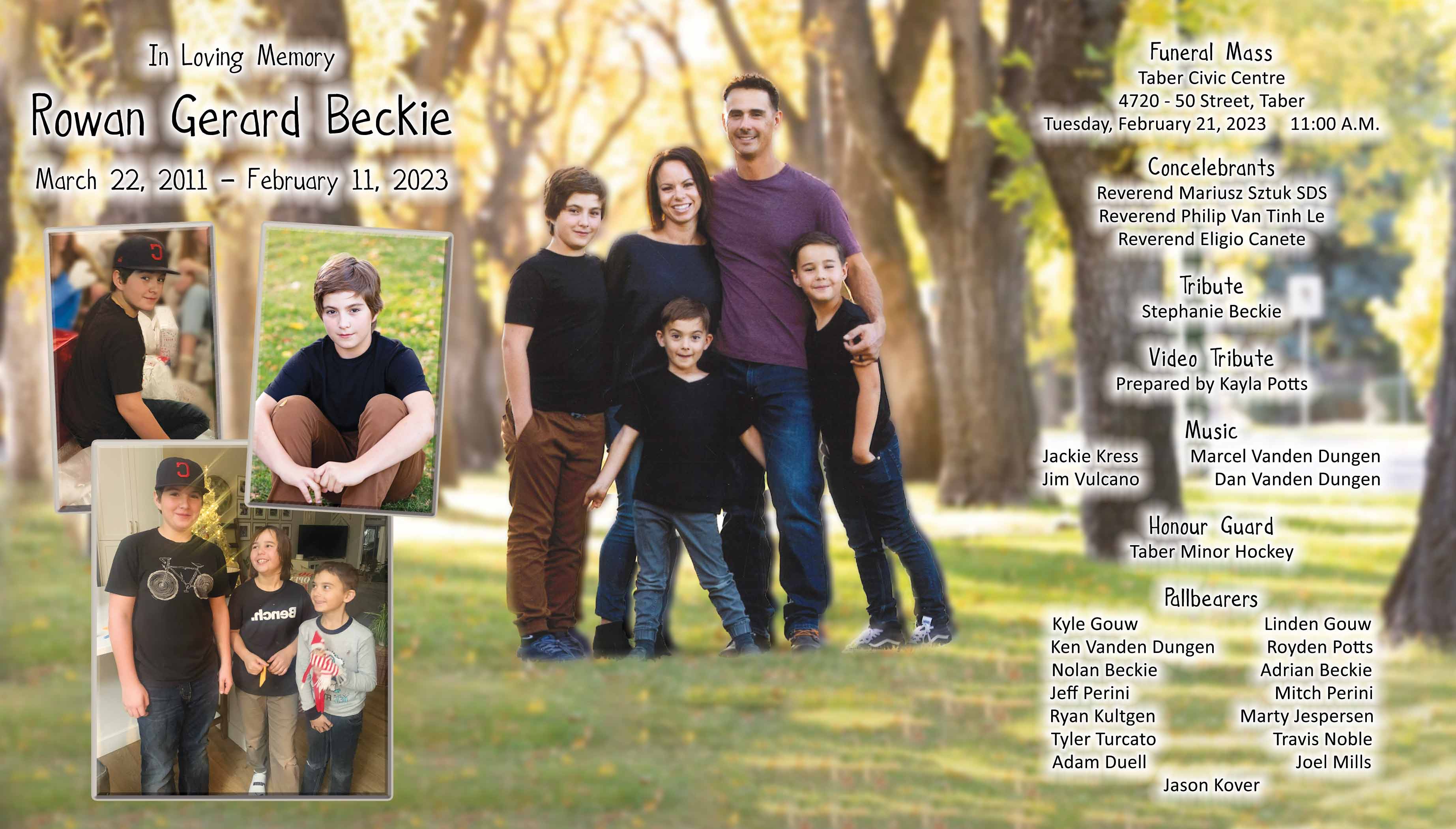 Rowan Gerard Beckie, beloved son of Stephanie and Malcolm and brother to Dane and Liam, passed away unexpectedly on Saturday, February 11, 2023 at the age of 11 years.