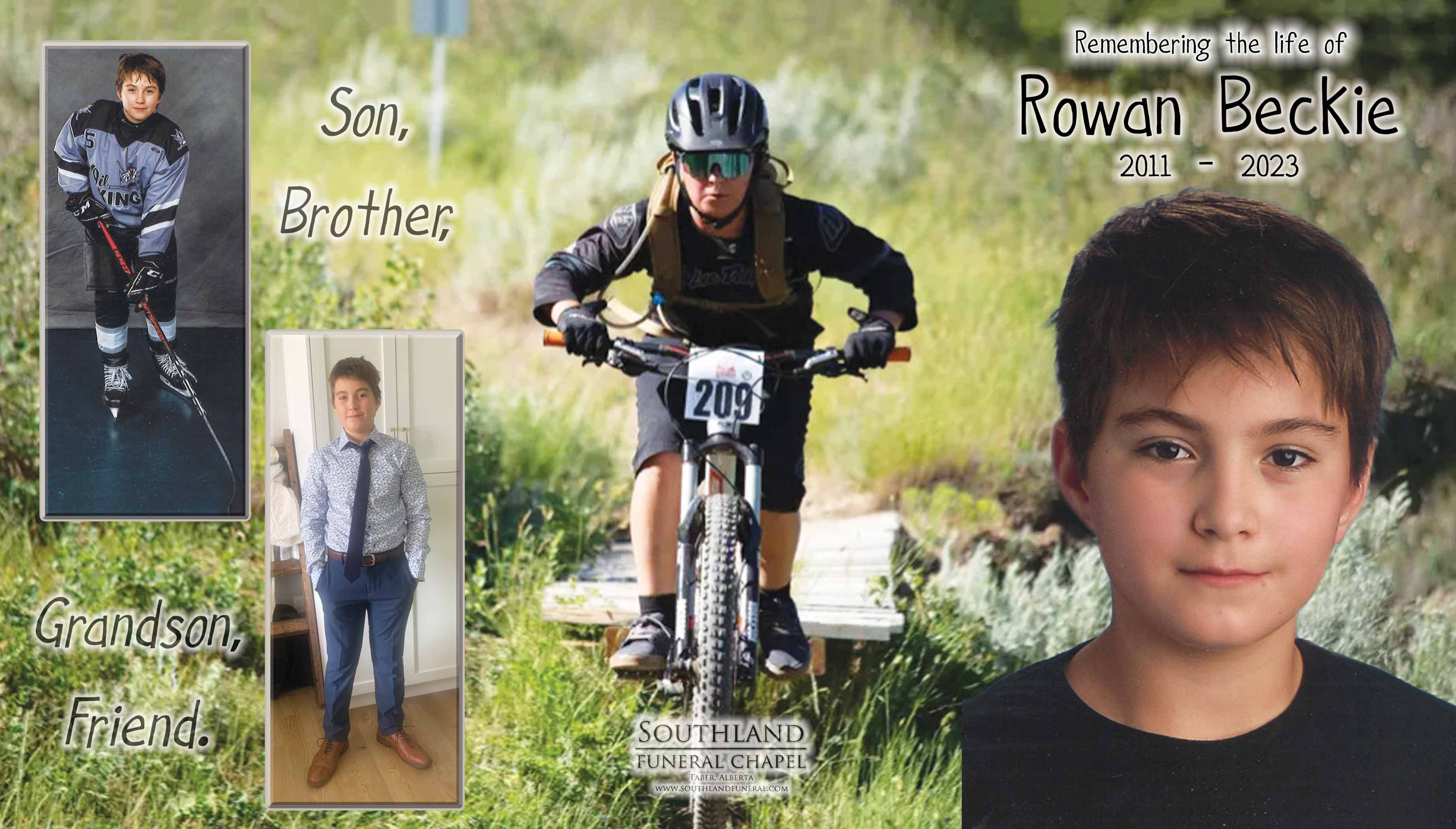 Rowan was born in Taber on March 22, 2011 to Malcolm and Stephanie Beckie. He was their first born and the light of their lives. Rowan was a big brother to Dane and Liam whom he looked over and protected. He was a mini version of his dad right from the beginning. Rowan’s love for biking began shortly after his first birthday with his run bike. As he grew, so did his abilities and interests in other activities such as fishing, golfing, shooting, playing board and card games (especially Exploding Kittens), hunting, history, skiing.... the list could go on forever. To say he was a talented mountain biker is an understatement. He would bike down any mountain or coulee path, regardless of the level of difficulty, he made it look easy.