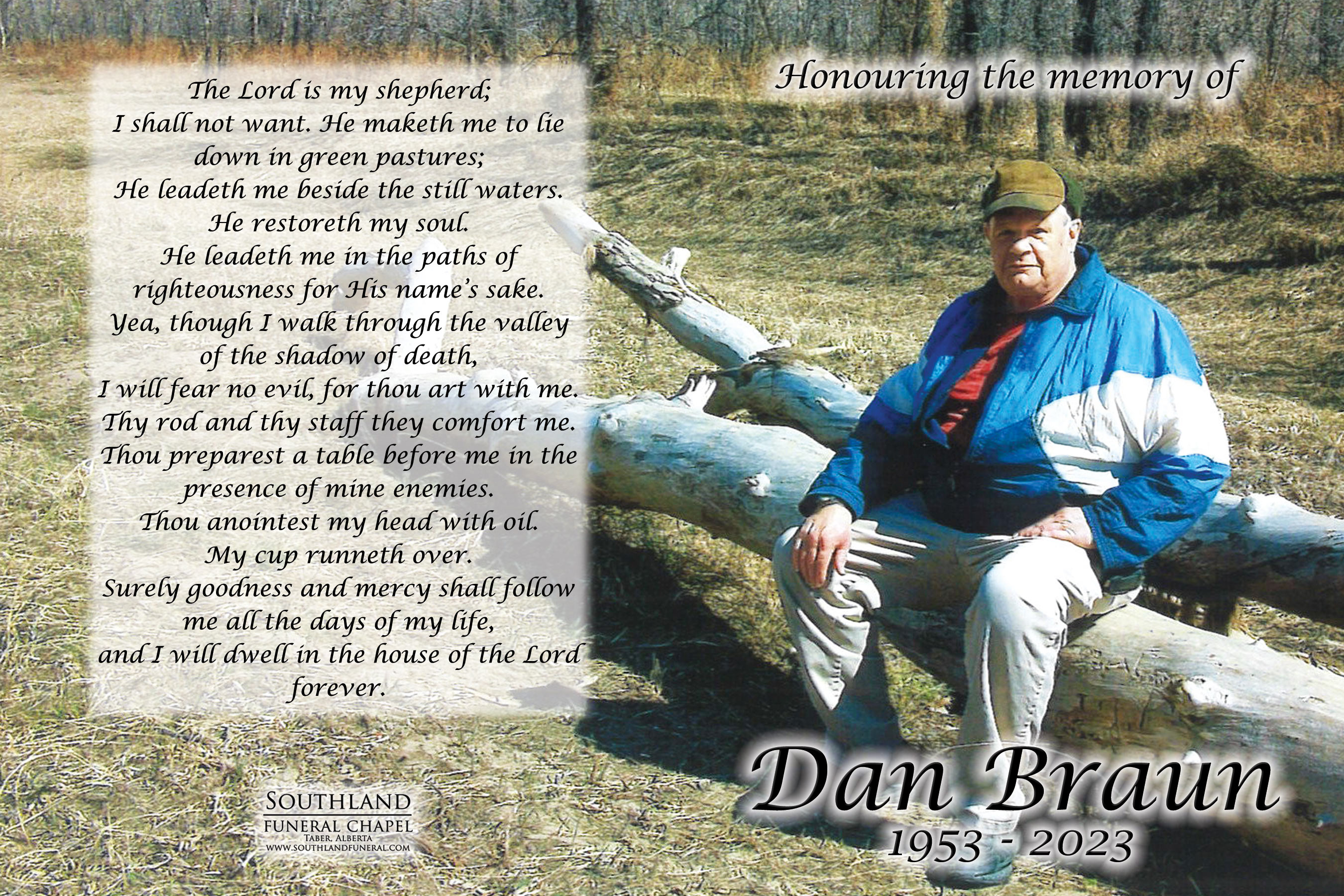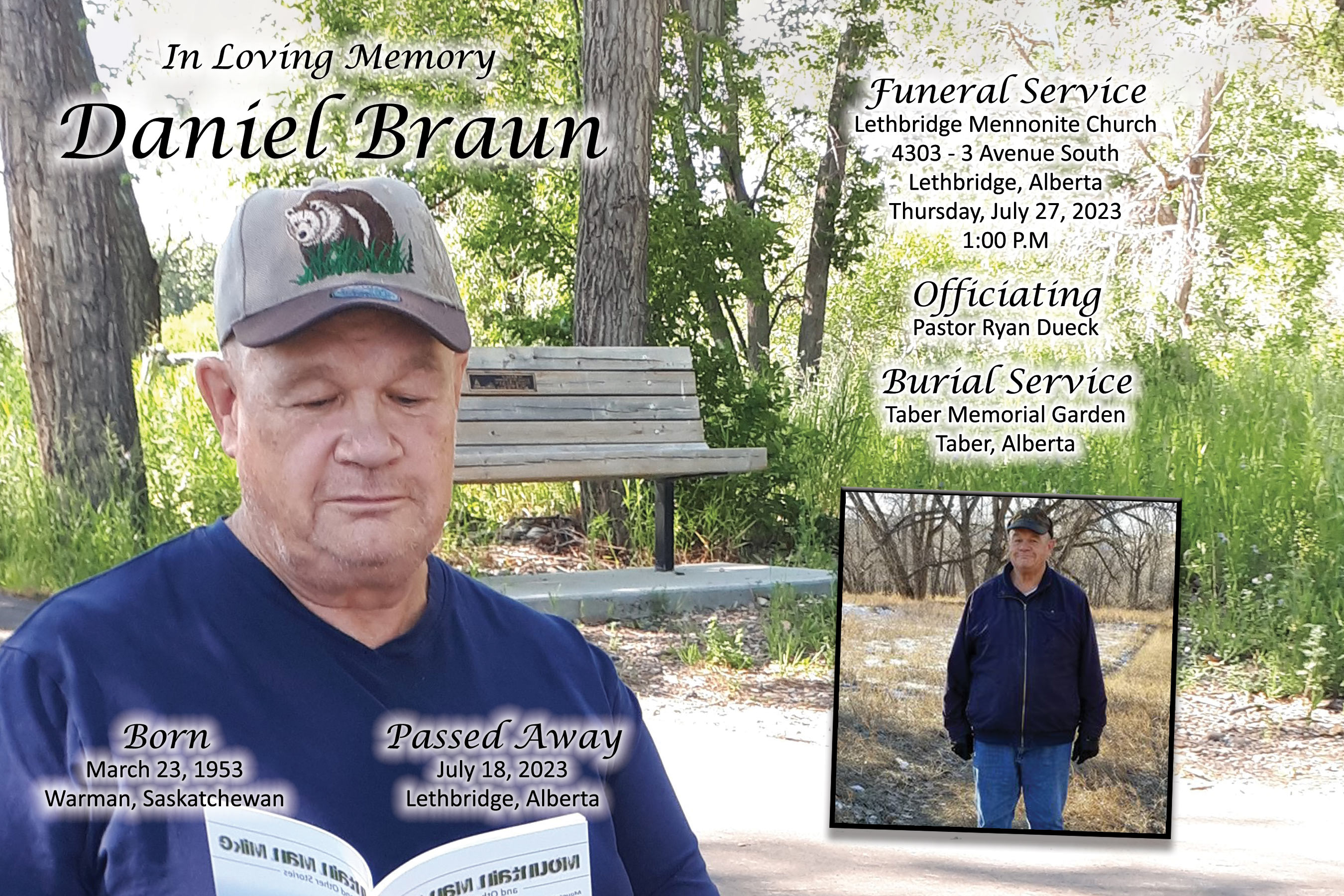 Daniel Braun, passed away in Lethbridge on Tuesday, July 18, 2023 at the age 70 years.