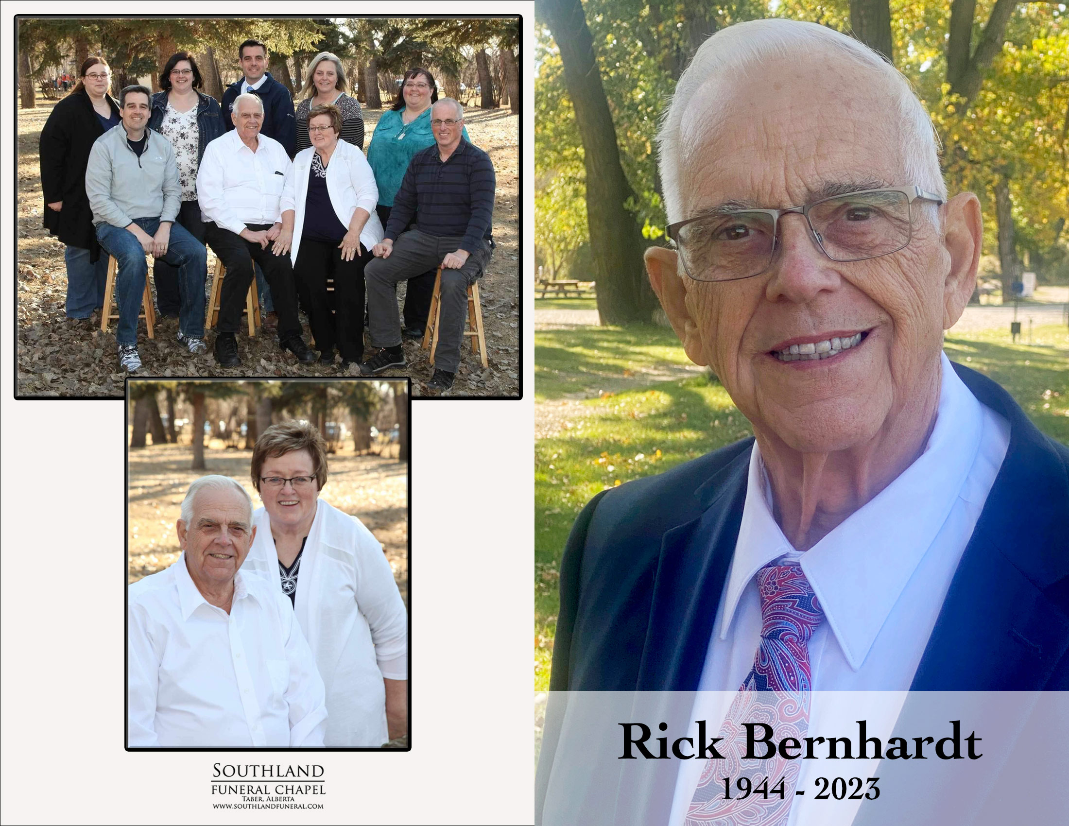 Rick is survived by his wife of fifty five years, Karen Bernhardt; children Tami (John) Grocholl of Virginia, Christopher (Ann) Bernhardt of Utah, Scott (Korryn) Bernhardt of Utah, Thomas (Audrie) Bernhardt of Utah, Laura Bernhardt of Utah, Diana (Logan) Payne of Calgary and Kara (Joe) Atwood of Taber, as well as twenty two grandchildren and two great grandchildren.