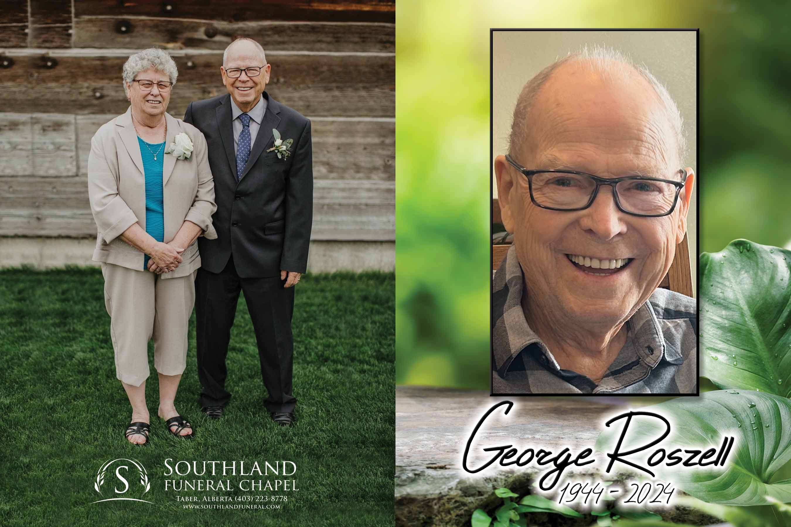 Besides his loving wife Elsie, George is survived by his son Tyler (Cathy) Roszell of Lethbridge, son Waylon (Julie) Roszell of Strathmore and daughter Rebecca (Aaron) Brower of Aden. He is also survived by seven grandchildren Austin (Chayla), Blair, Justin, Josh, Morgan, Linsey and Adison, as well as one great grandchild Layton. George is survived by his brother Jack (Pat) Roszell; sister Debbie (Ken) Fonderick; sisters-in-law Doreen Butz and Terry Webster as well as numerous nieces and nephews.