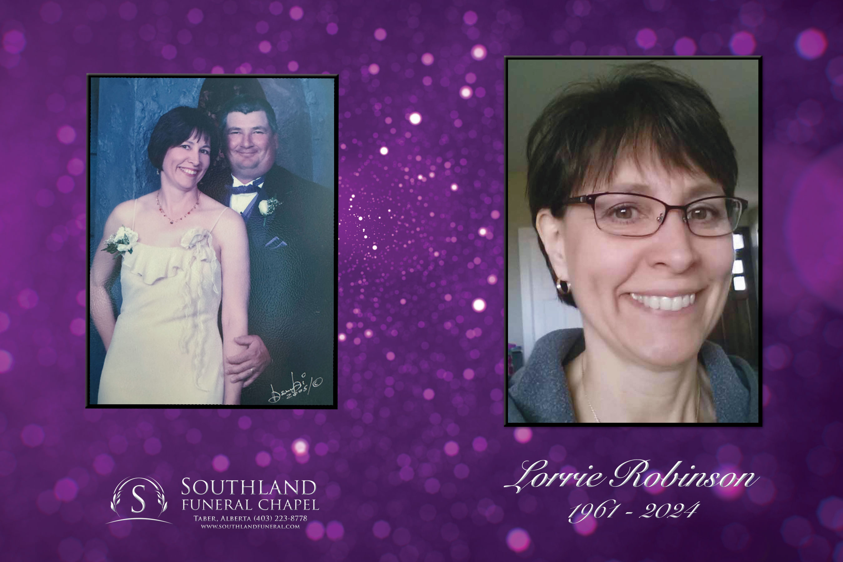Lorrie Lee Robinson, beloved wife of Dan Robinson, passed away peacefully at home, surrounded by her family in Taber on Friday, October 18, 2024 at the age of 63 years.