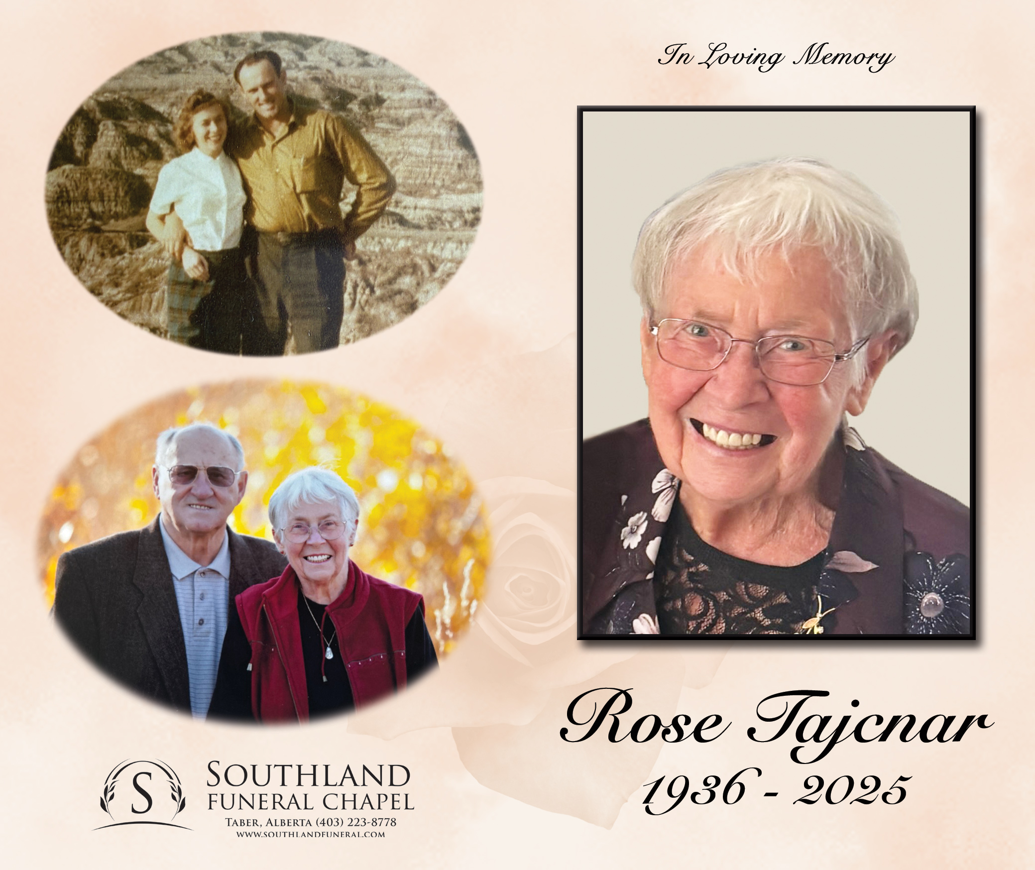 Relatives and friends were invited to Prayers at Southland Funeral Chapel, 5006 - 48 Avenue, Taber on Thursday, September 11, 2025 at 7:30 P.M.