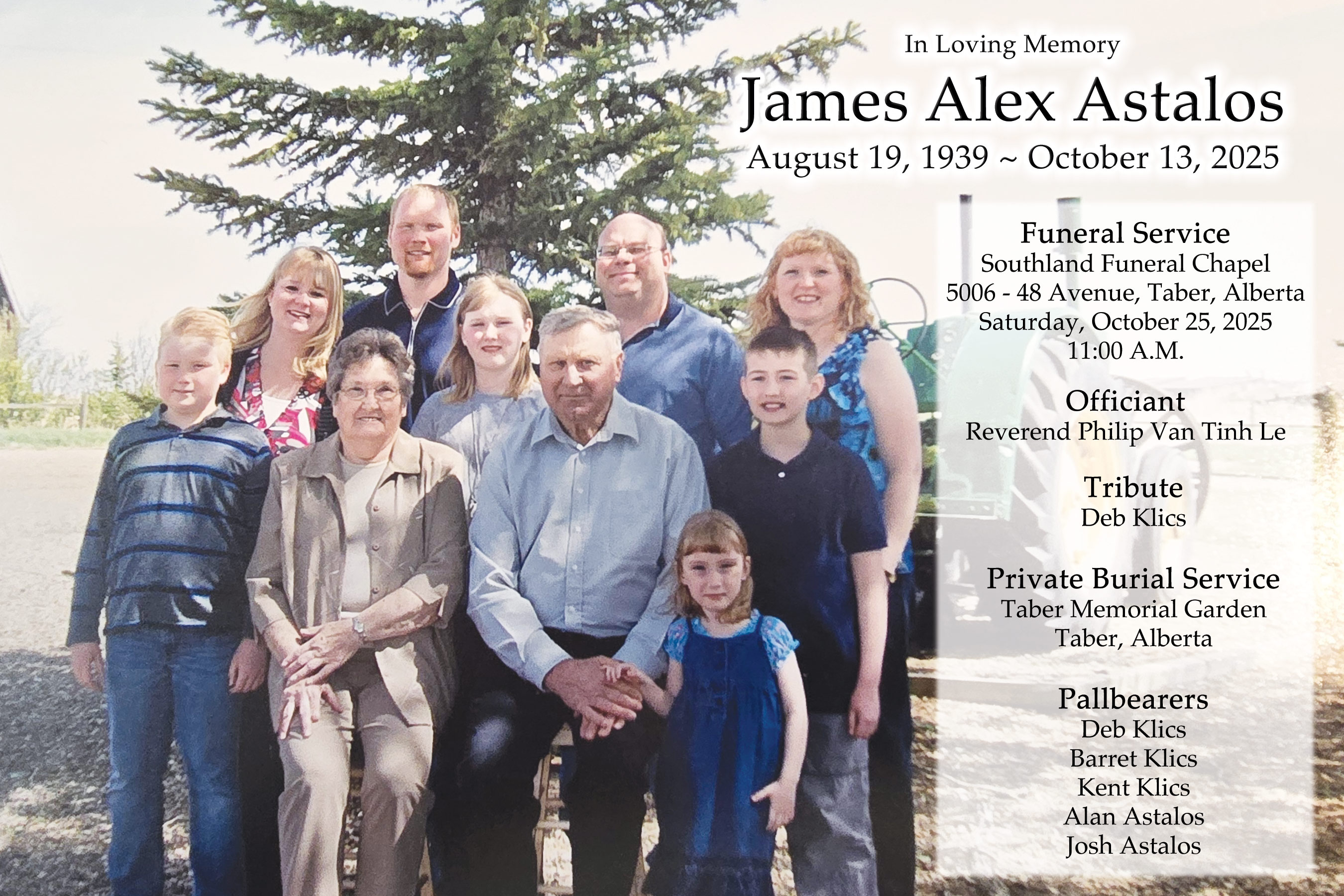 James Alex Astalos, beloved husband of the late Anne Astalos, passed away in Lethbridge on Monday, October 13, 2025 at the age of 86 years.